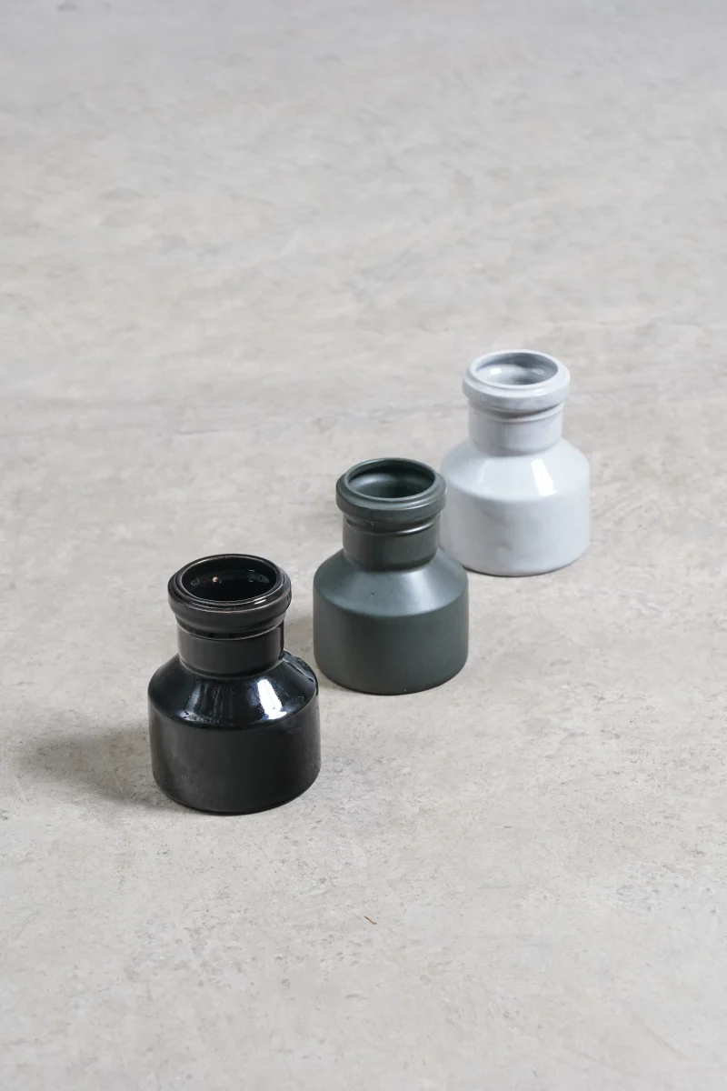 Pipe 02 is the second ceramic vase from Argentinian design studio, Primitive Buro’s Industrial Collection. This collection draws inspiration from the often-overlooked industrial elements and materials that typically remain concealed from view in construction. With Pipe 02, the goal was to spotlight these usually hidden forms and recontextualize them into familiar, everyday objects.