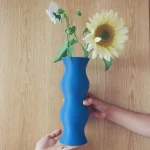 3d print 3d printed decor 3d printed vase Angular vase Architectural vase Artistic vase Bathroom blue vase curvy vase Decorative vessel dry flower vase Eclectic Design Entryway Flower vase Gifts for Lovers Gifts Under 100 Hallway Kitchen Living Room plastic vase Recycled plastic recycled plastic vase Reuse Sculptural vessel Tableware Treasures Textured Surface textured vase Vase