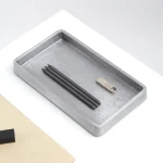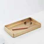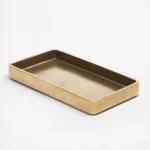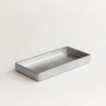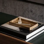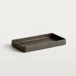 A compact accent tray by Stem with tapered walls and rounded corners, Plato’s simple design reveals an intriguing surface texture. It is ideal for holding smaller objects like stationery, keys, watches, jewellery, or glasses. sand-cast in solid metal, the tray is imagined on your center table, console, or night-stand.