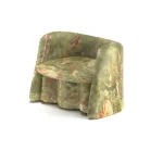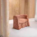 Marble armchair with a unique design, which features a wave imitation base made from natural stone, wood or in a soft upholstered option.