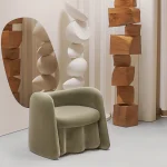 The Plisse Upholstered Armchair combines a unique design with a wave-inspired base, crafted from natural stone, wood, or soft upholstery options. Its sculptural form adds elegance and texture to any space, making it a statement piece that blends organic and refined elements. Perfect for those seeking both comfort and artistry in their furniture, the Plisse chair is a versatile addition to contemporary interiors.