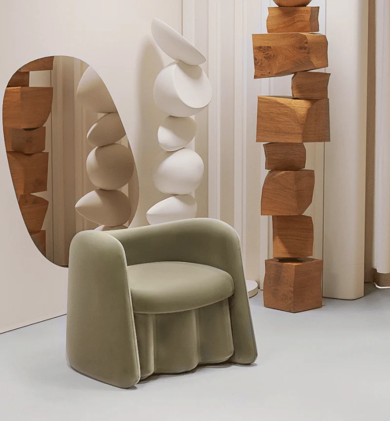 The Plisse Upholstered Armchair combines a unique design with a wave-inspired base, crafted from natural stone, wood, or soft upholstery options. Its sculptural form adds elegance and texture to any space, making it a statement piece that blends organic and refined elements. Perfect for those seeking both comfort and artistry in their furniture, the Plisse chair is a versatile addition to contemporary interiors.