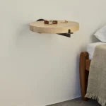 Plus Nightstands by Goux Studio New York are designed for bedside essentials. They are solidly constructed, but visually lightweight and modest in footprint. They can also be used for general storage or display in other spaces—next to a reading chair or in an entryway, for example. Plus Nightstand shelves are milled from 3.175 cm [1.25 in] thick solid American maple and rift-sawn white oak. Each shelf is supported by a plus-shaped aluminum wall bracket, available in four colors. Plus Nightstands are also available with wider rectangular shelves, see the Plus Nightstand Type A product page.