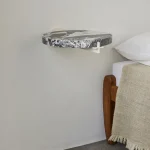 Plus Nightstands by Goux Studio New York are designed for bedside essentials. They are solidly constructed, but visually lightweight and modest in footprint. They can also be used for general storage or display in other spaces—next to a reading chair or in an entryway, for example. These Plus Nightstand shelves are milled from 3 cm [1.1875 in] thick Grand Antique marble. Each shelf is supported by a plus-shaped aluminum wall bracket, available in four colors. Plus Nightstands are also available with round hardwood shelves as well as wider rectangular shelves. See related product pages.
