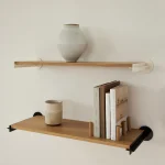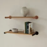 Plus Shelves by Goux Studio New York are designed for both storage and display. They can be used for everyday items, like cookbooks and records, or as a platform for art and other important objects. Install them individually or in series—long runs are particularly beautiful! These shelves are made with solid American White Oak, with matching round pegs. The pegs can be fitted through regularly-spaced holes within the shelf board surface to keep books or other objects upright.