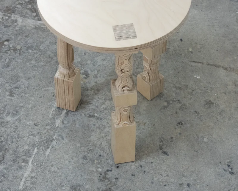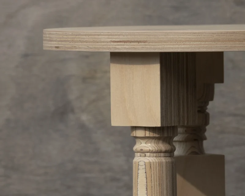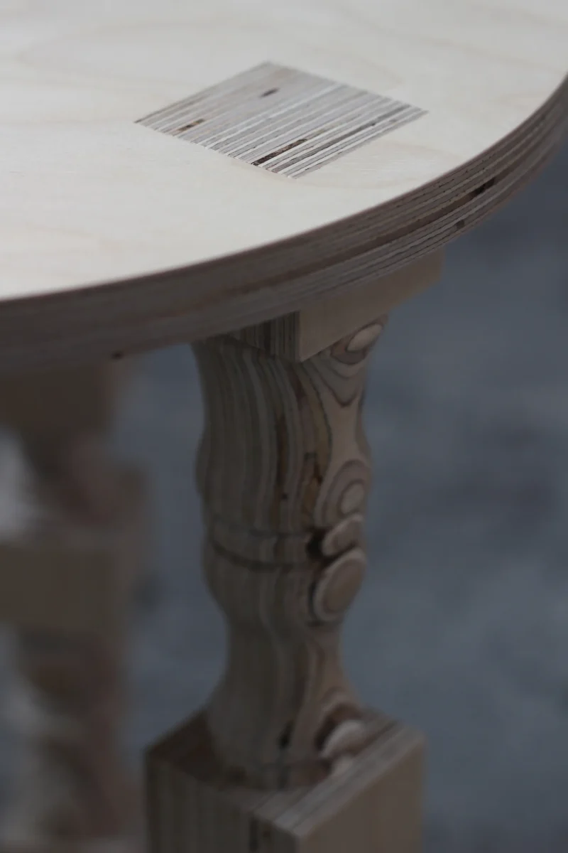 Various types of plywood were tested to select a high-strength material for the legs of the Ply Stool. This process identified the most suitable material, ensuring structural stability.