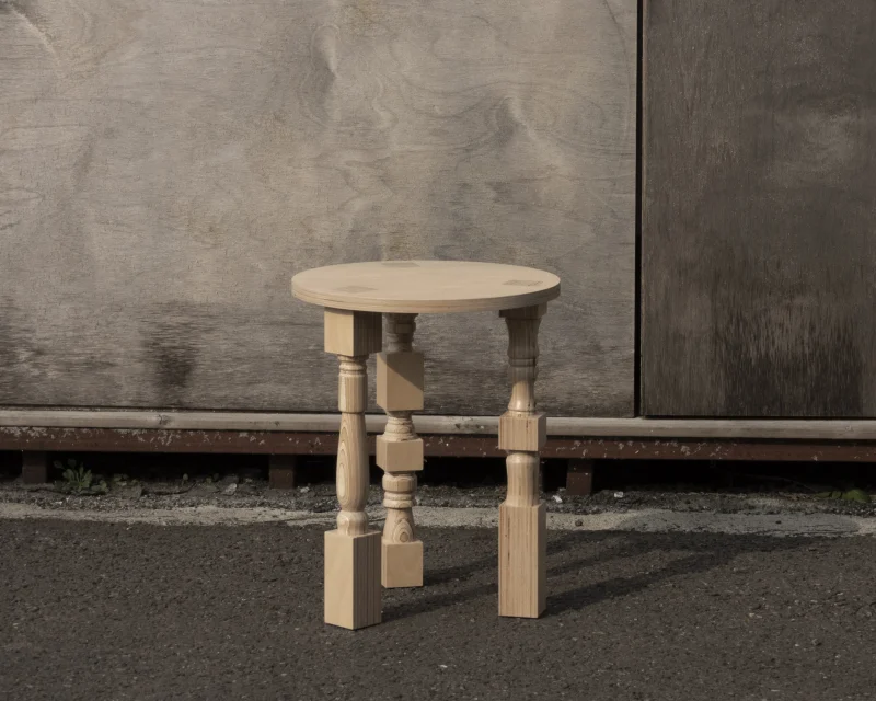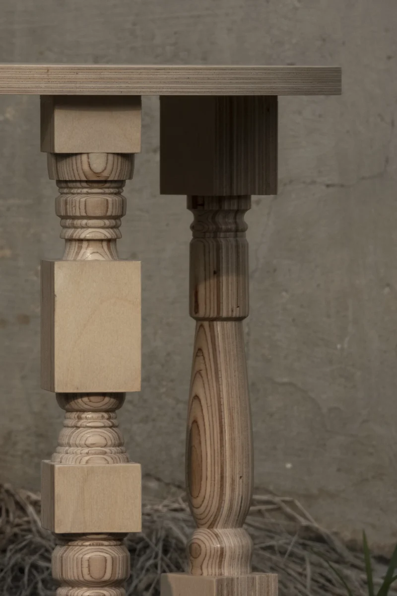 The Ply Stool by Byungsub Kim is a reinterpretation of the aesthetic potential of birch plywood edges. Reassembling and sculpting the plywood using woodturning techniques transforms the material—traditionally used as flat panels—into a form resembling solid wood, exploring new aesthetic possibilities. This design moves beyond the functional use of plywood, turning it into a distinctive visual element in its own right.