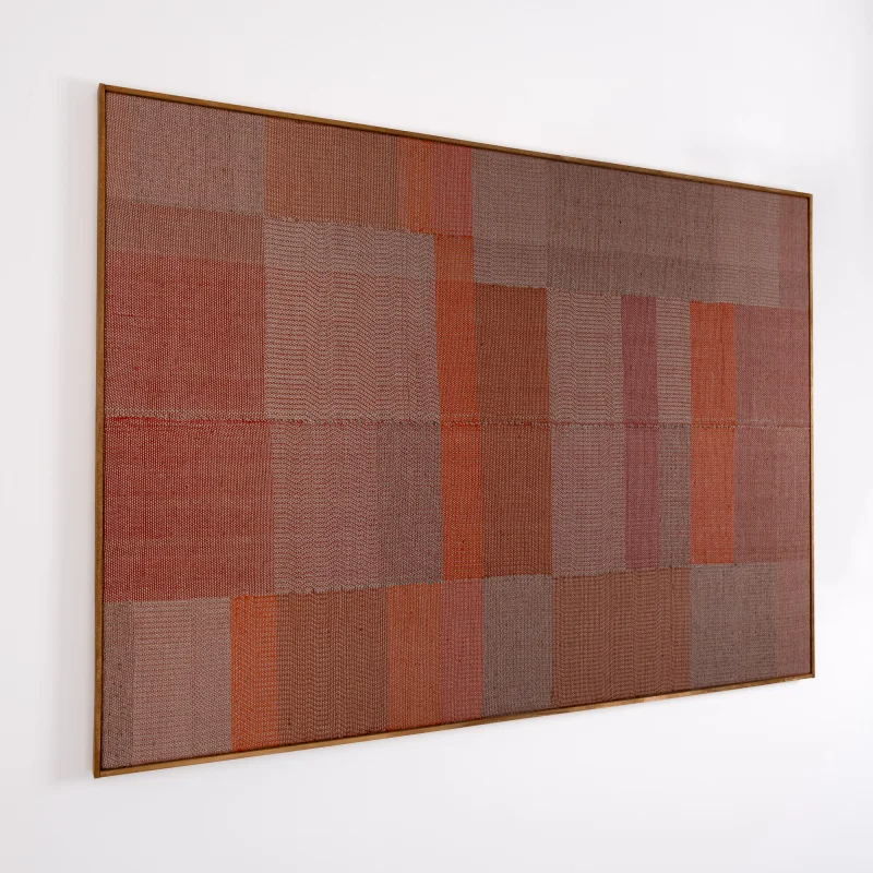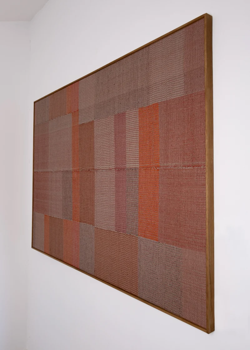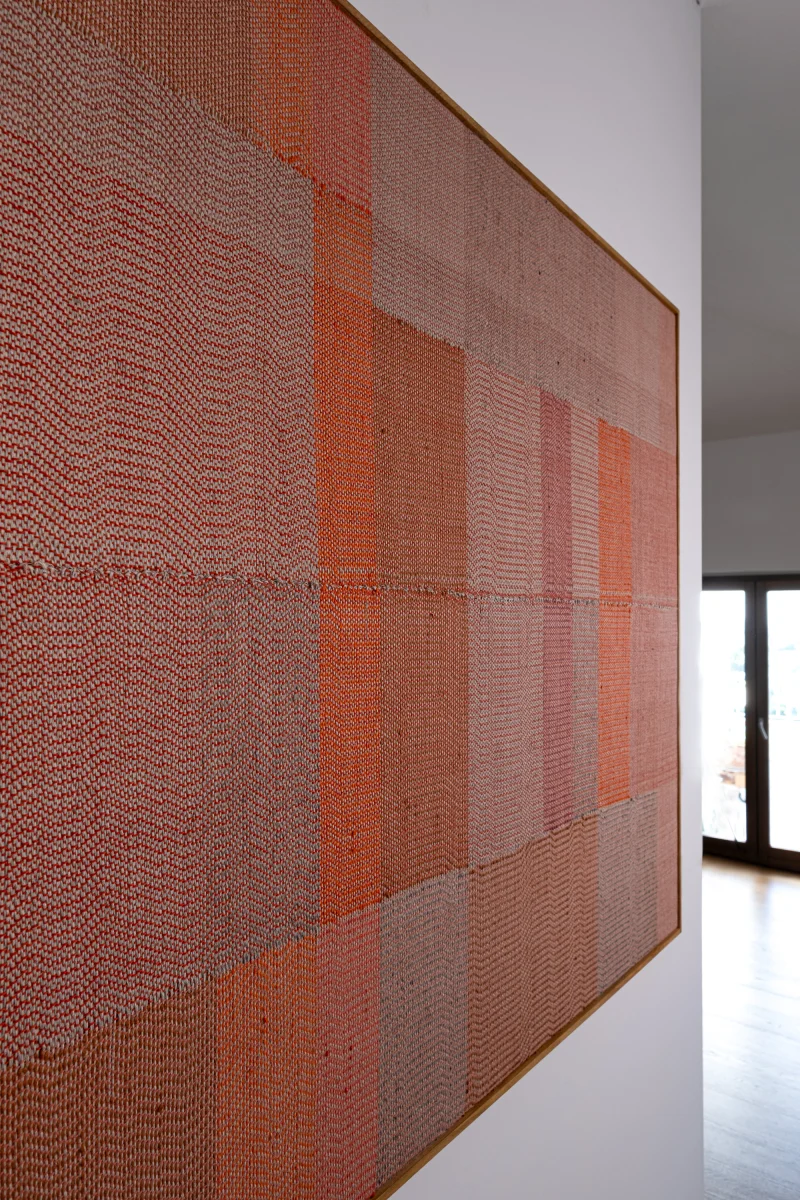 The weavings created by Susanna Costantini are the result of a totally manual process, the works are woven on a traditional 4-shaft loom following a variety of weaving approaches and using selected, recycled or handcrafted yarns with manual spinning and natural dyeing. These choices give the works specific qualities and characterising irregularities.