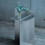 This piece has a minimalist construction with only three metal plates bolted together.