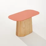 PONTI side table surprises with minimalist clarity, refreshing design and exciting contrasts. Elegant curves meet geometric rigour. A plain-coloured steel oval floats as light as a feather above the protective, earthy wooden cone. The lively ash grain and powder-coated tabletop harmonise in soulfully. PONTI feels good, visually, haptically and functionally. Creates space where it is needed. Complements dining table, sofa and bed or enriches hallway, office or waiting area. The PONTI side table is available in walnut or ash and in a limited edition of 12 pieces.