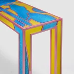 Through symbolic elements that the artist creates through the art of mirror engraving, it is possible to transform the flow of thoughts that accompanies everyday life into reflective material, freezing them and making them tangible in this work with a pop vein, a poetic code of the designer.