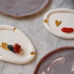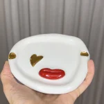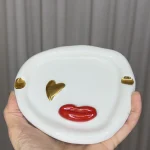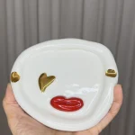 “Hania Jneid’s sculptural ashtray in pure white porcelain captures the ephemeral nature of habit and indulgence, immortalizing it in delicate, permanent form. Embedded within the surface, porcelain cigarettes appear abandoned mid-use, blurring the boundaries between function and statement. This piece explores the tension between fragility and endurance, elevating a transient act into an enduring object of contemplation. With its raw yet refined presence, it transforms an everyday ritual into a thought-provoking sculptural gesture.”