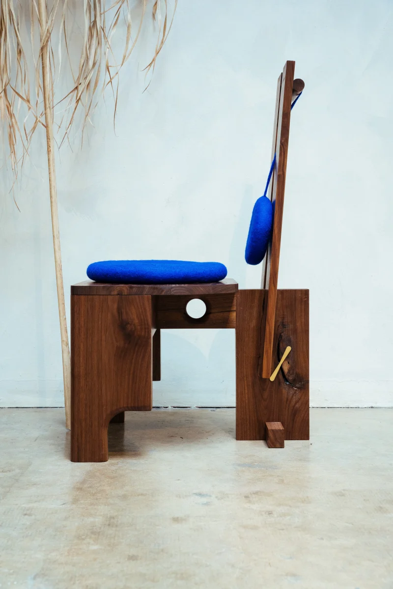 Accent chair Architectural chair artistic chair Chairs Collectible Chair Contemporary chair Contemporary Comfort Elegant living room furniture Felt cushion Future 50 Living Room Sculptural furniture Seat cushion Unique Chair Design Walnut wood chair Wooden chair