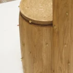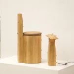 The series explores essential typologies, such as seating, lighting, and vessels. A chair sculpted from a solid tree trunk evokes the strength and patience of a centuries-old tree, while a coffee table, crafted from forgotten wood fragments, breathes new life into discarded materials, revealing their hidden beauty. Each piece carries a story, an imprint of time.
