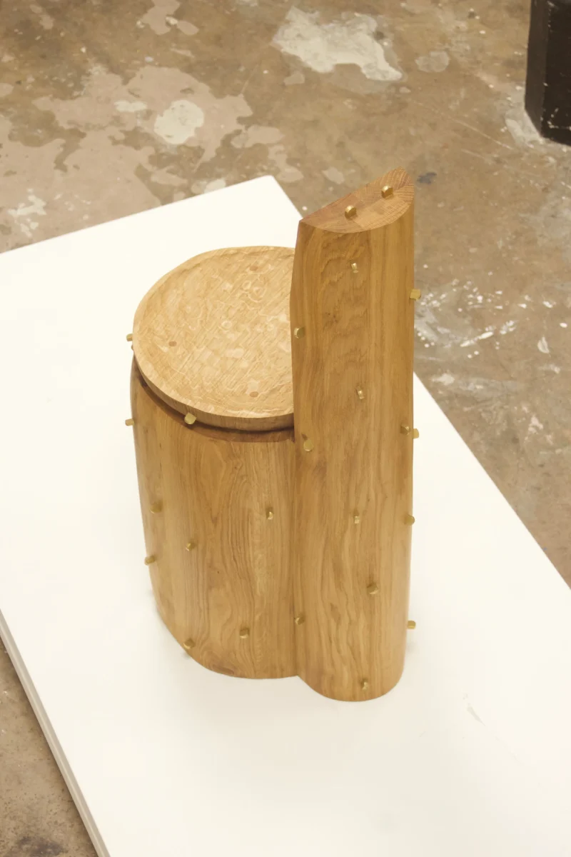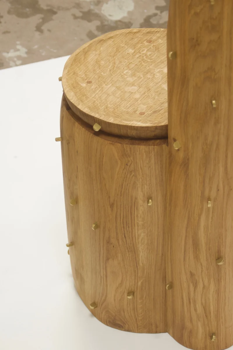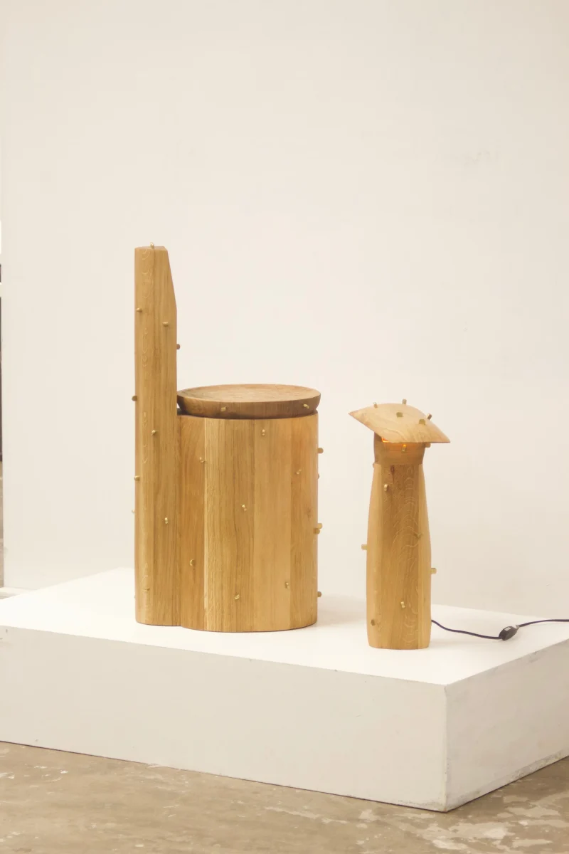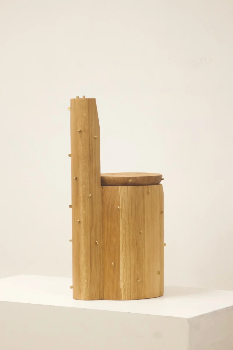 The series explores essential typologies, such as seating, lighting, and vessels. A chair sculpted from a solid tree trunk evokes the strength and patience of a centuries-old tree, while a coffee table, crafted from forgotten wood fragments, breathes new life into discarded materials, revealing their hidden beauty. Each piece carries a story, an imprint of time.