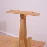 The series explores essential typologies, such as seating, lighting, and vessels. A chair sculpted from a solid tree trunk evokes the strength and patience of a centuries-old tree, while a coffee table, crafted from forgotten wood fragments, breathes new life into discarded materials, revealing their hidden beauty. Each piece carries a story, an imprint of time.