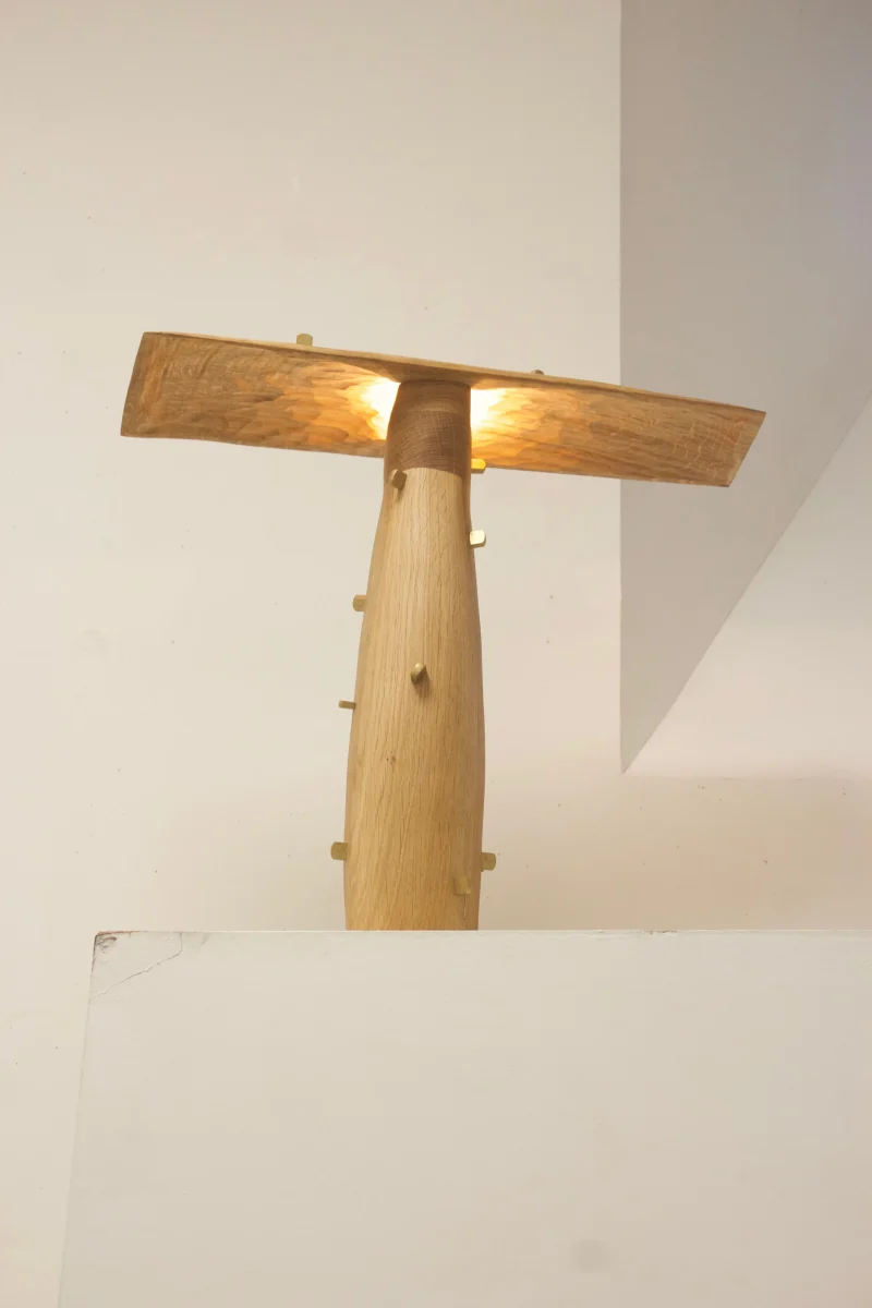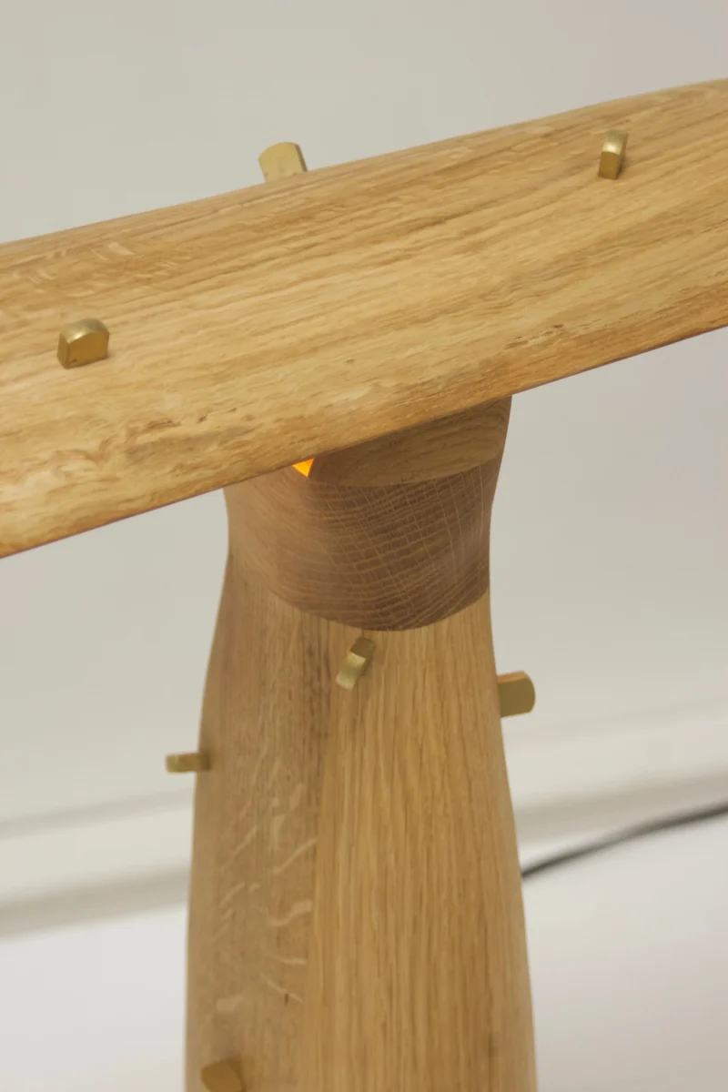 50x50x15 / Solid oak and brass / G9 LED / Assembled with beech dowels.