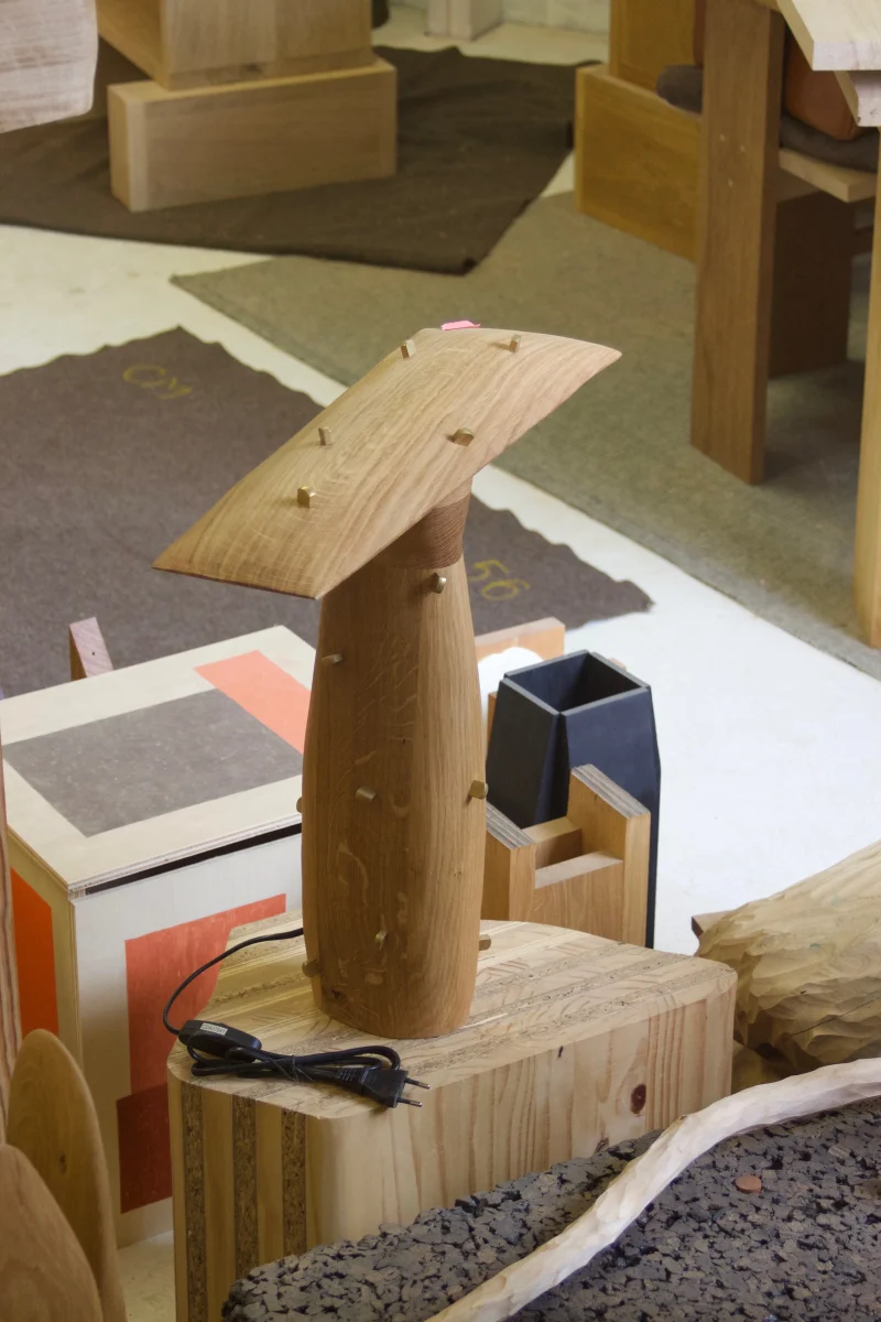 The series explores essential typologies, such as seating, lighting, and vessels. A chair sculpted from a solid tree trunk evokes the strength and patience of a centuries-old tree, while a coffee table, crafted from forgotten wood fragments, breathes new life into discarded materials, revealing their hidden beauty. Each piece carries a story, an imprint of time.