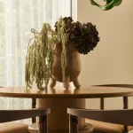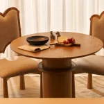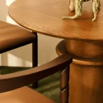 Contemporary furniture Design Designer table dining furniture handcrafted table interior furniture kitchen table luxury furniture minimalist design modern dining modern interior Natural wood Oak dining table Round dining table sculptural pedestal small dining Solid oak statement table warm interiors Wooden table