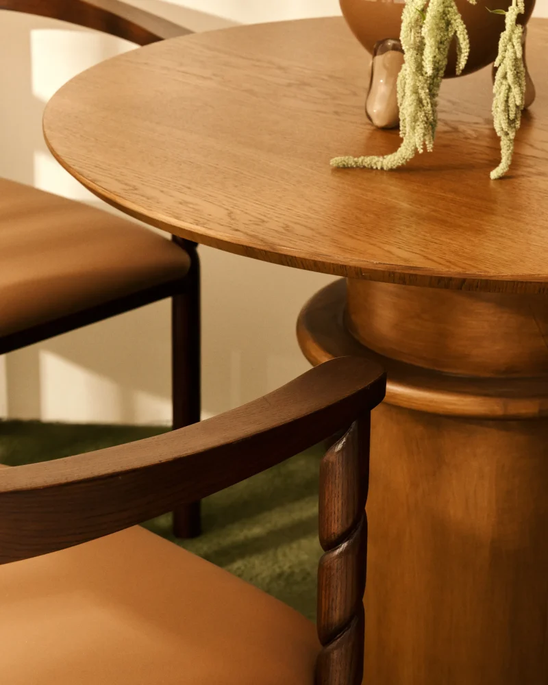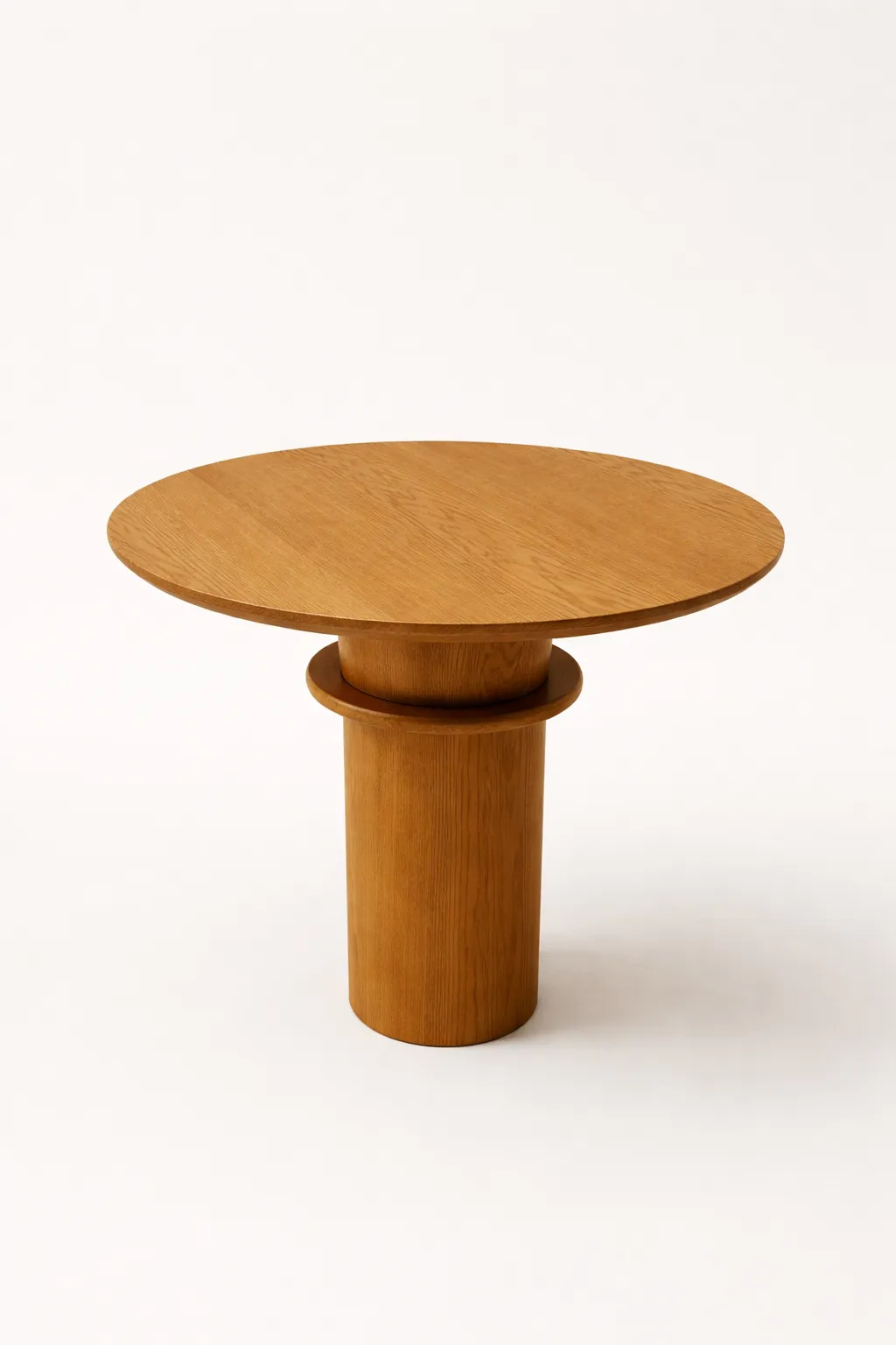 Contemporary furniture Design Designer table dining furniture handcrafted table interior furniture kitchen table luxury furniture minimalist design modern dining modern interior Natural wood Oak dining table Round dining table sculptural pedestal small dining Solid oak statement table warm interiors Wooden table