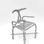 An exploration in lost foam casting, Primal Chair by Matan Fadida is a sculptural piece that foregrounds materiality. Initially carved from foam, the chair was taken to a local foundry in London to be cast in aluminum. The details retain the cuts and movements made during the initial carving process, preserving evidence of how the chair was crafted. Named Primal due to its simplicity and honest use of materials, the chair was originally conceived to represent the ‘skeleton’ of a chair.