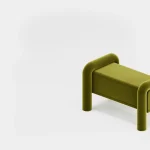 The collection includes 4 objects – a Lounge Chair, a Bench, an Ottoman, and a Sofa. All 4 consist of curved tubes that enclose the seats. The way the components of these objects are attached creates the impression that they barely touch each other.