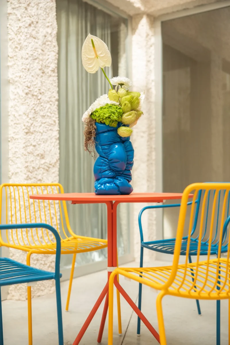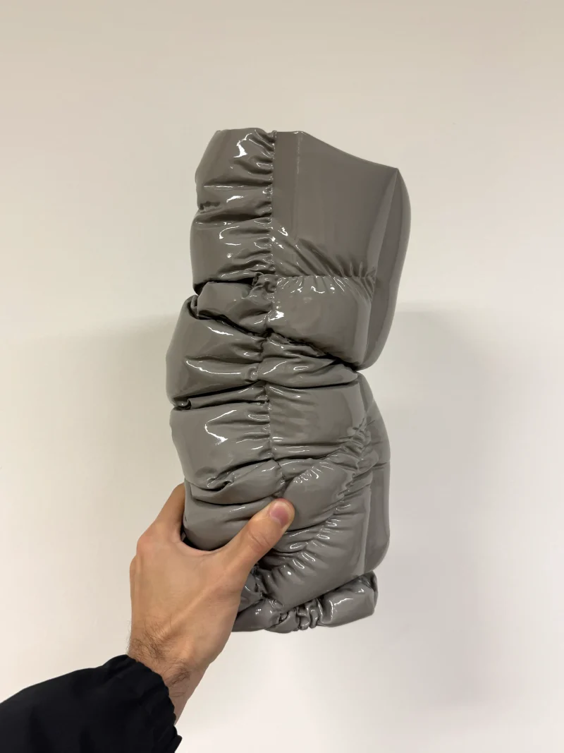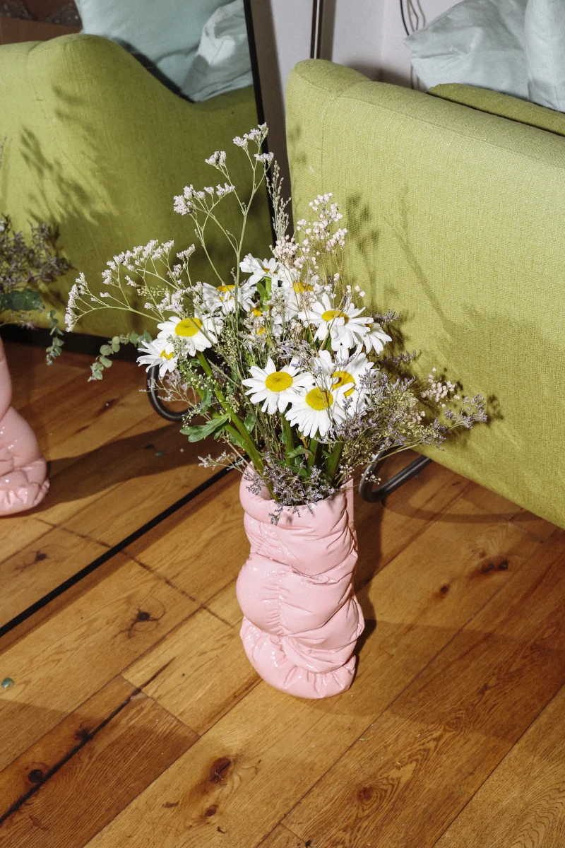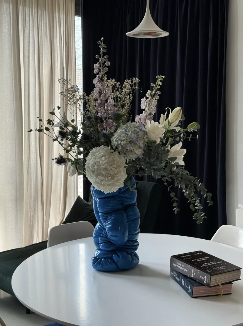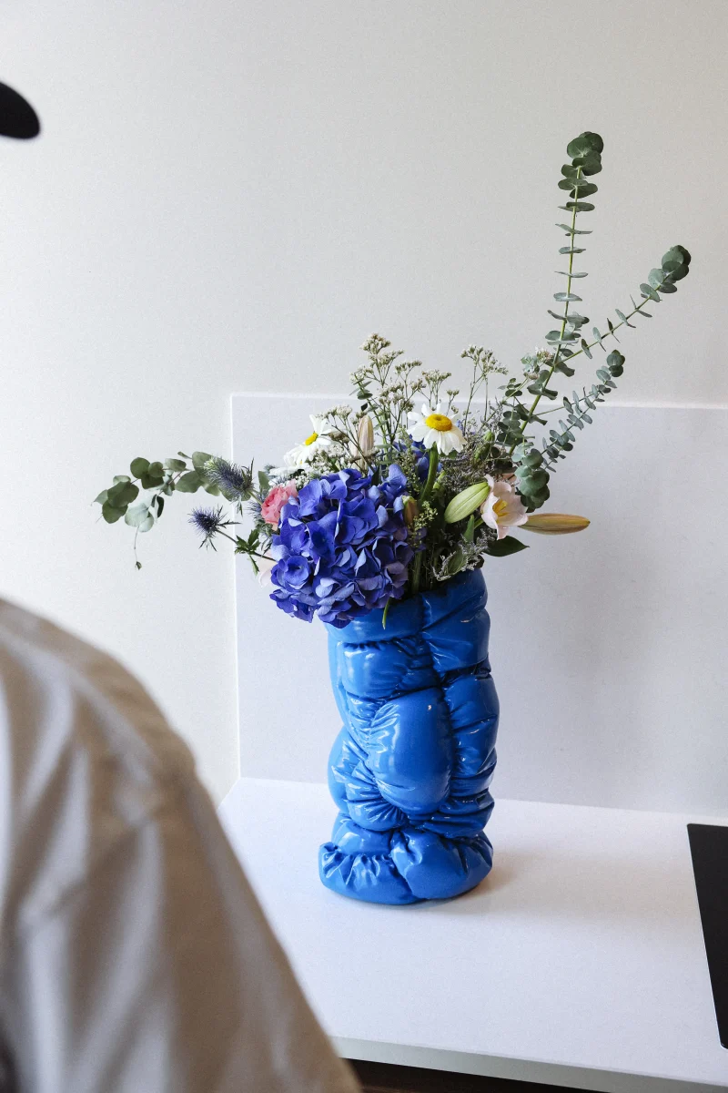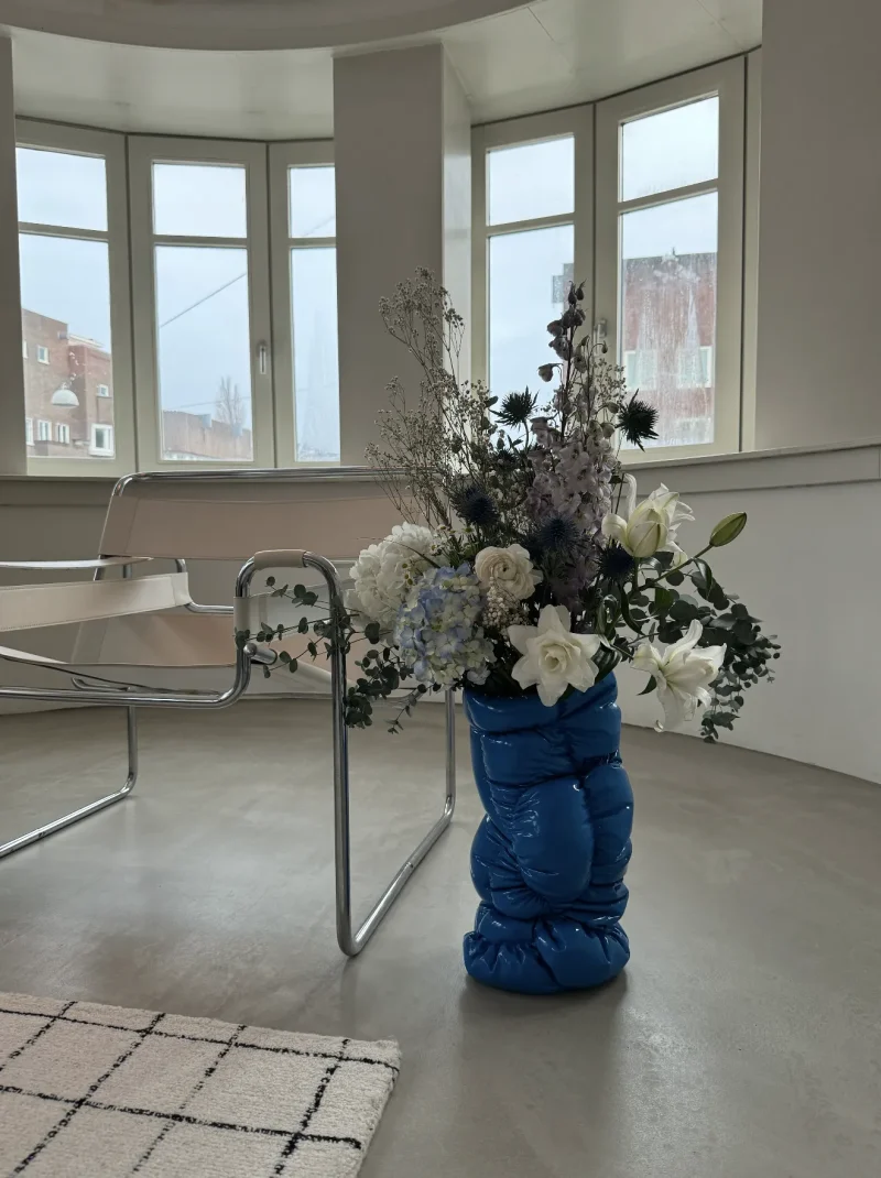 The Puffer Vase by Gast Studio is a striking fusion of digital innovation and analog design, embodying a sophisticated interplay of craftsmanship, technology, and creativity. Crafted from durable ABS plastic, each vase undergoes a meticulous process, being plastic-coated with premium paint and finished with a high-gloss varnish, resulting in a robust and lustrous appearance. The design evokes everyday items like bubble wrap or inflatable armbands, with its inflated structures obscuring their functionality at first glance while radiating an unexpected lightness.