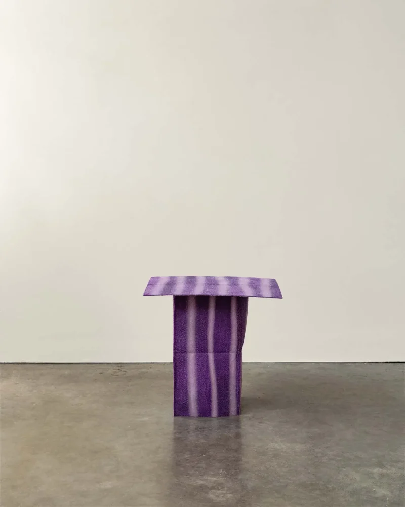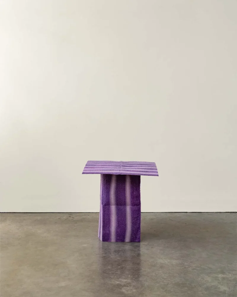 The Wowtable is an ongoing project, expanding on materials, proportions, and surface treatments. Inspired by trips to the auto shop, The Wowtable utilizes simple materials (shammies) and simple construction processes to create an arresting, and usable occasional table for a relatively affordable end purchase price. The overarching theme of the Wowtable is a substrate, currently felt shammies, soaked in epoxy resin and left to set in its table silhouette. Stay tuned – The Wowtables are sporadically produced by hand and sold as they become available, so this variation might not be available for long!