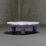 Crafted by Czech Republic-based designer David Čáp, this unique coffee table embodies radical design and maximalist effect. Upcycled, light purple and white, fully functional, handmade coffee table made of shredded paper with an ovular organic shape. One piece only. Despite the unusual material, it has sufficient durability and load capacity (80 kg) and is easily washable.