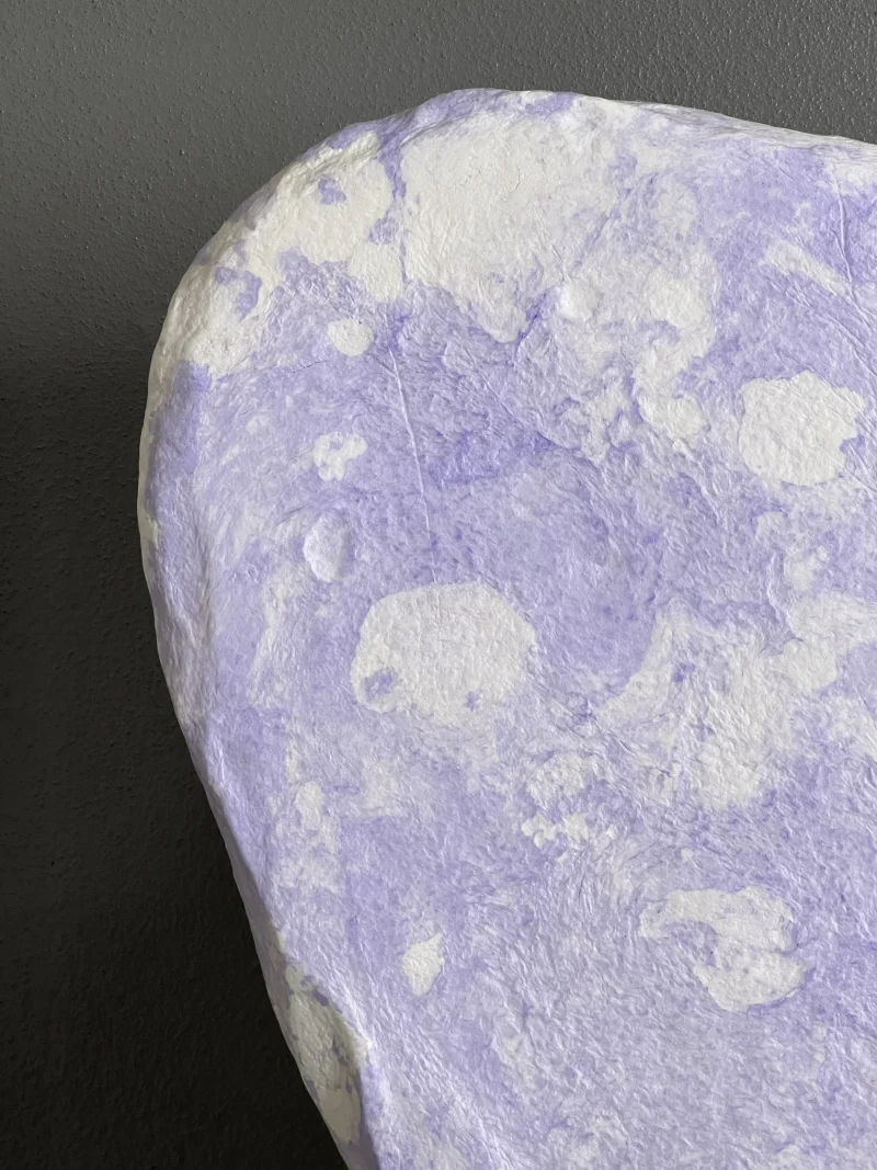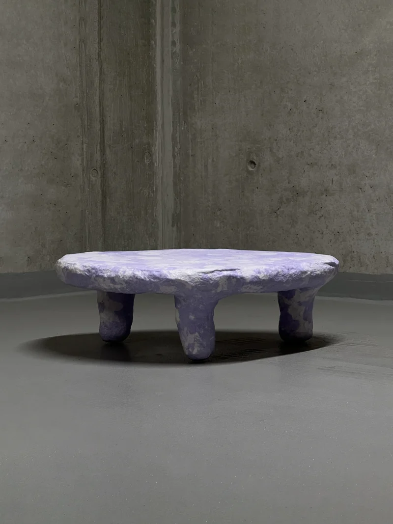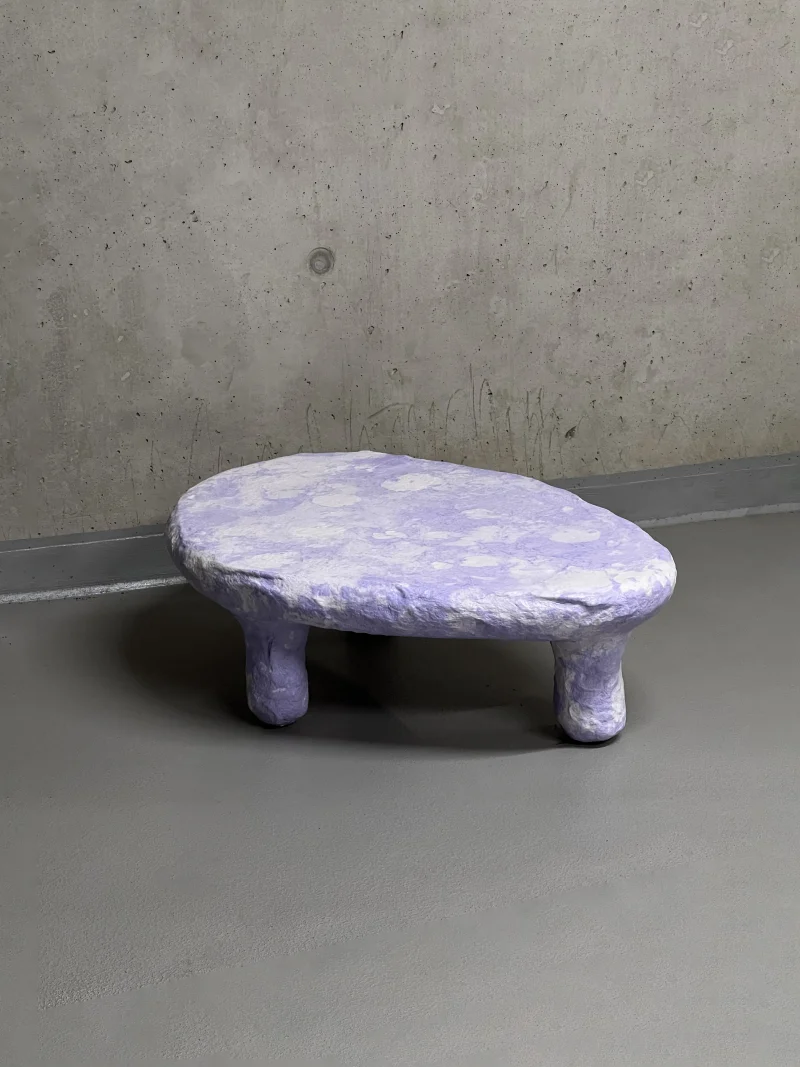 Crafted by Czech Republic-based designer David Čáp, this unique coffee table embodies radical design and maximalist effect. Upcycled, light purple and white, fully functional, handmade coffee table made of shredded paper with an ovular organic shape. One piece only. Despite the unusual material, it has sufficient durability and load capacity (80 kg) and is easily washable.