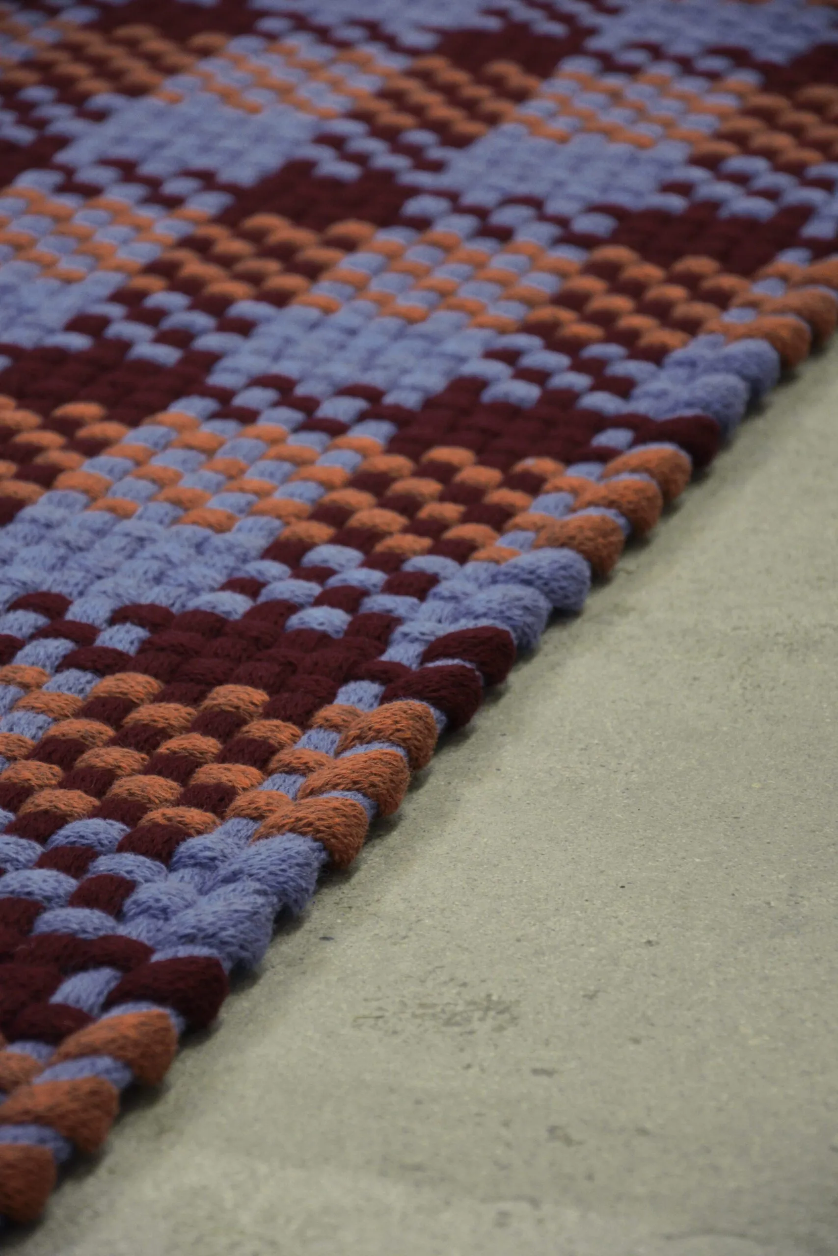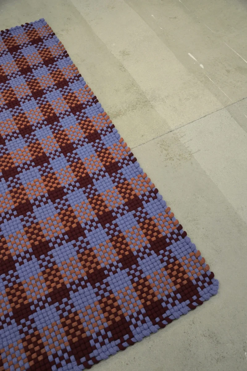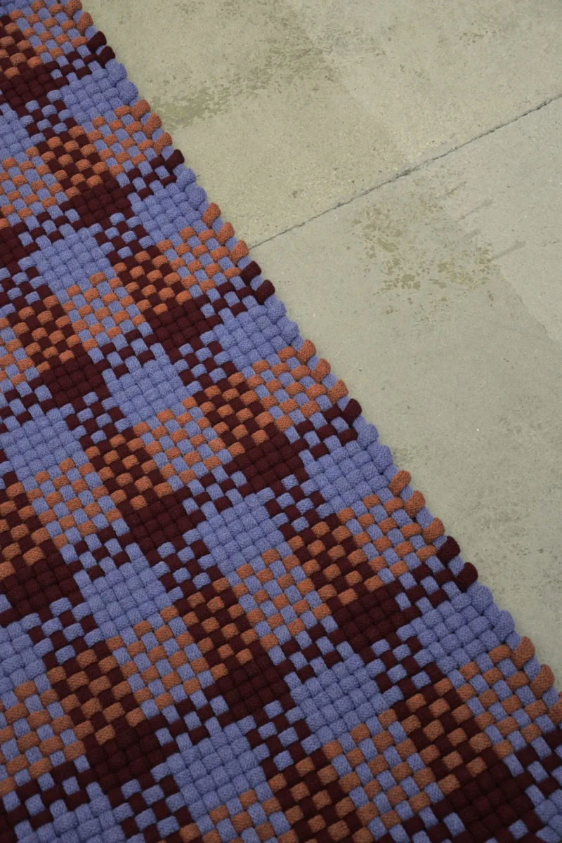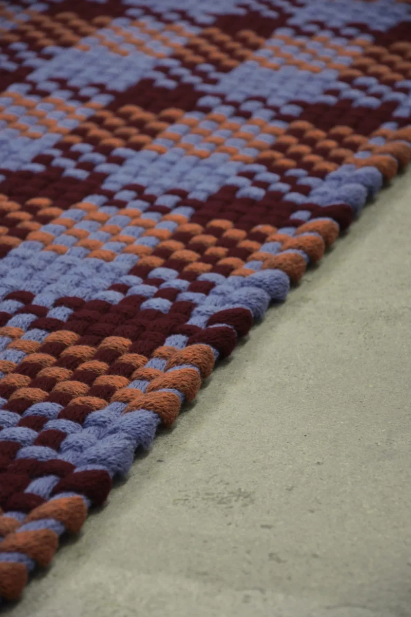 The rugs are knitted and then woven on a custom made frame, handmade in the designer’s own studio.