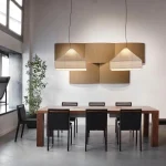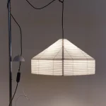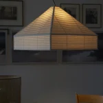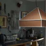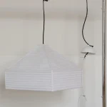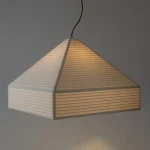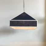 The Pyramid Hanging Pendant Lamp by NASSI LAMPS creates a warm and cozy atmosphere with its pure linen shade. Featuring a generous, geometric silhouette, this pendant lamp offers chic appeal with a touch of mid century modern charm. The iron structure is covered in fabric, providing a crisp, clean look perfect for over a dining table or in an entryway. Available in various finishes, the pleated linen option accentuates the lamp’s geometric design, adding depth and texture to any space. Ideal for those seeking a stylish, yet cozy lighting solution for their home.