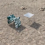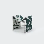 The stool is designed as the ultimate nomadic element, a compact seat where fabric is applied to a steel structure using zippers. This allows the fabric to move freely and easily remove or reassemble, blending flexibility with functionality.