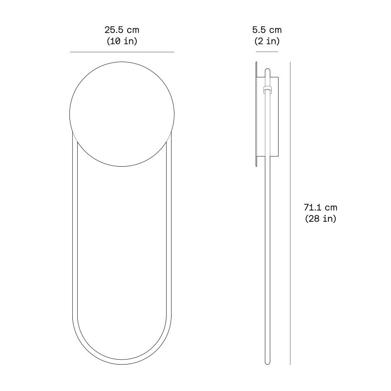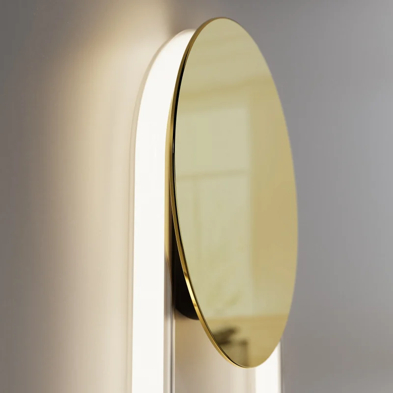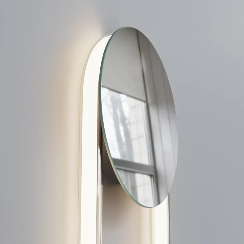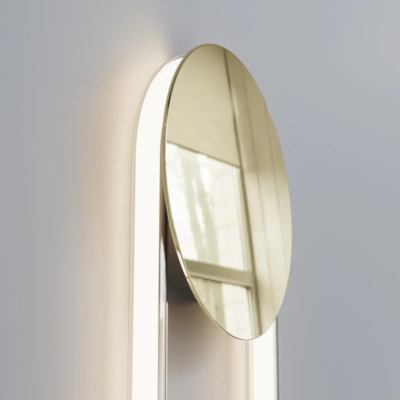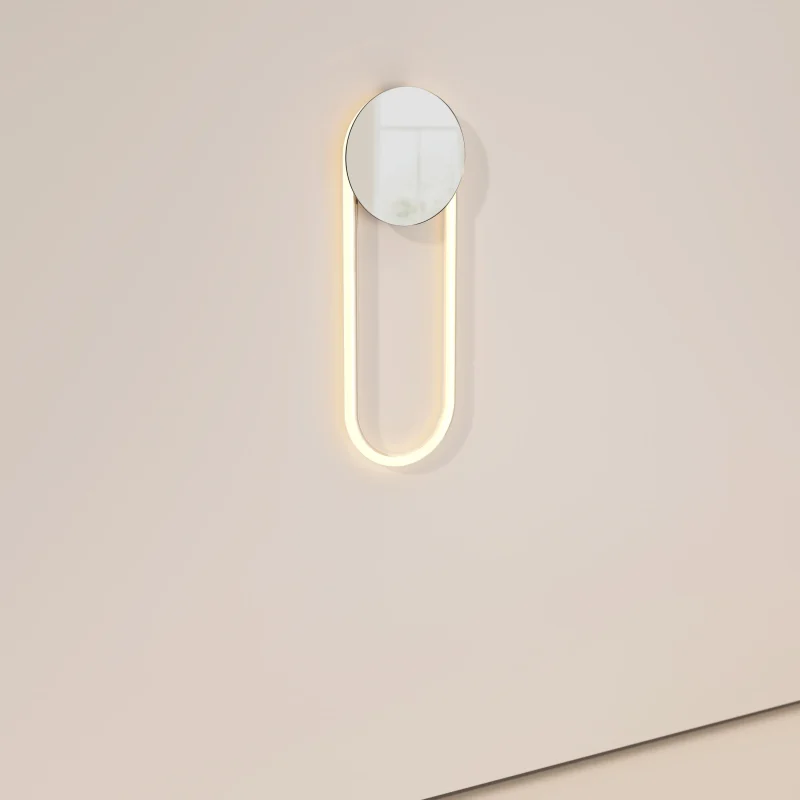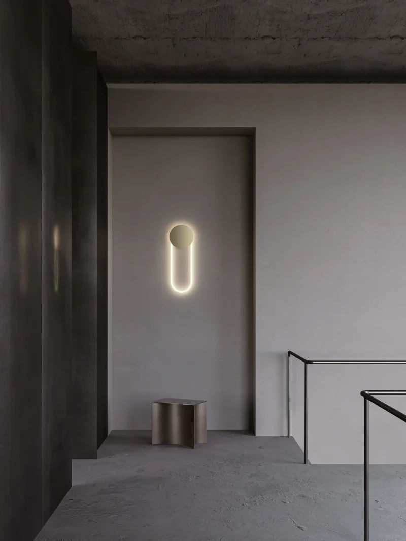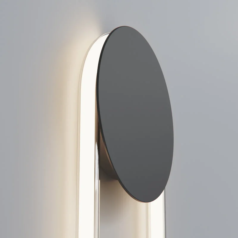 The RA Wall plays with contrasts, shadows, and reflections to communicate with its environment. The disc eclipses some of the light and attracts reflections from the room. The rounded glass and LED emit a bright, soft light on the wall.