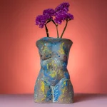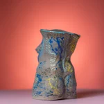 A singular handbuilt stoneware sculpture by Vale Ro, Rabiscada is accentuated with a combination of glazes and engobes, designed to evoke the fluidity and complexity of human relationships with ourselves. This piece, inspired by reflections on the female form. Intentionally intervened during the creation process, Rabiscada reveals layers of texture and color that symbolize the multifaceted nature of identity and connection. The vase’s deliberate imperfections highlight the continuous interplay between creation and self-discovery, celebrating the beauty of what lies beneath the surface.