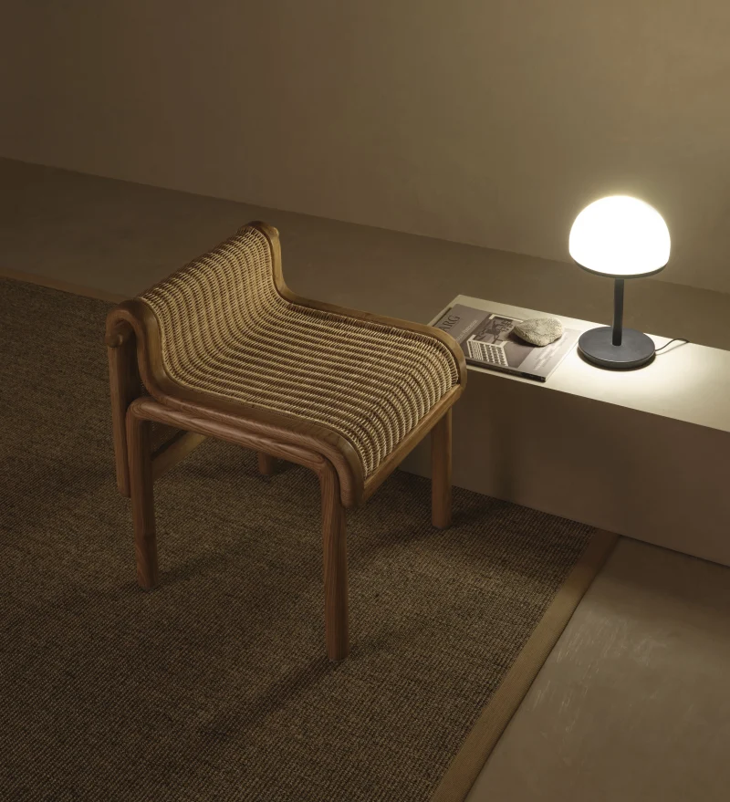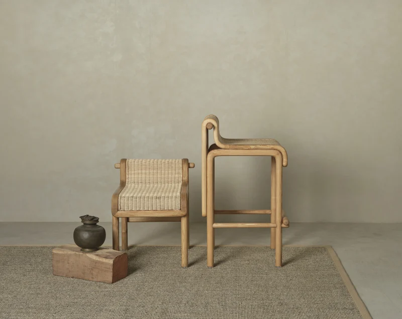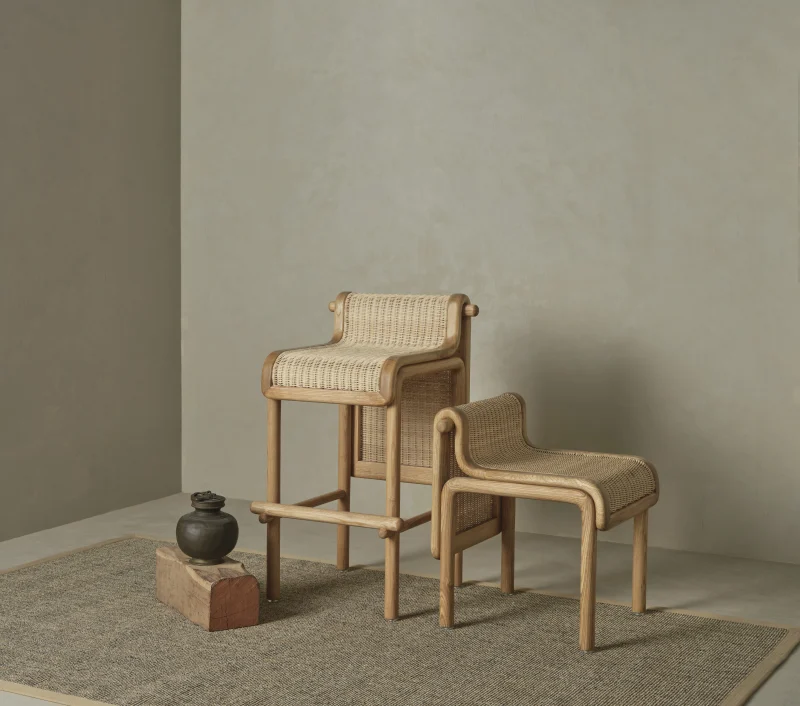 Nonchalant but unmissable, the Rahi short stool garners quiet attention with its wicker drape