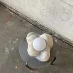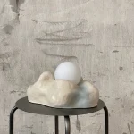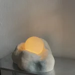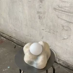 This lamp is made of raw, rough ceramics. The light bulb is included and it is a G9 ~200lm 2W warm white (2700K) light bulb. Equipped in European plug. Includes matte glass ball lampshade.