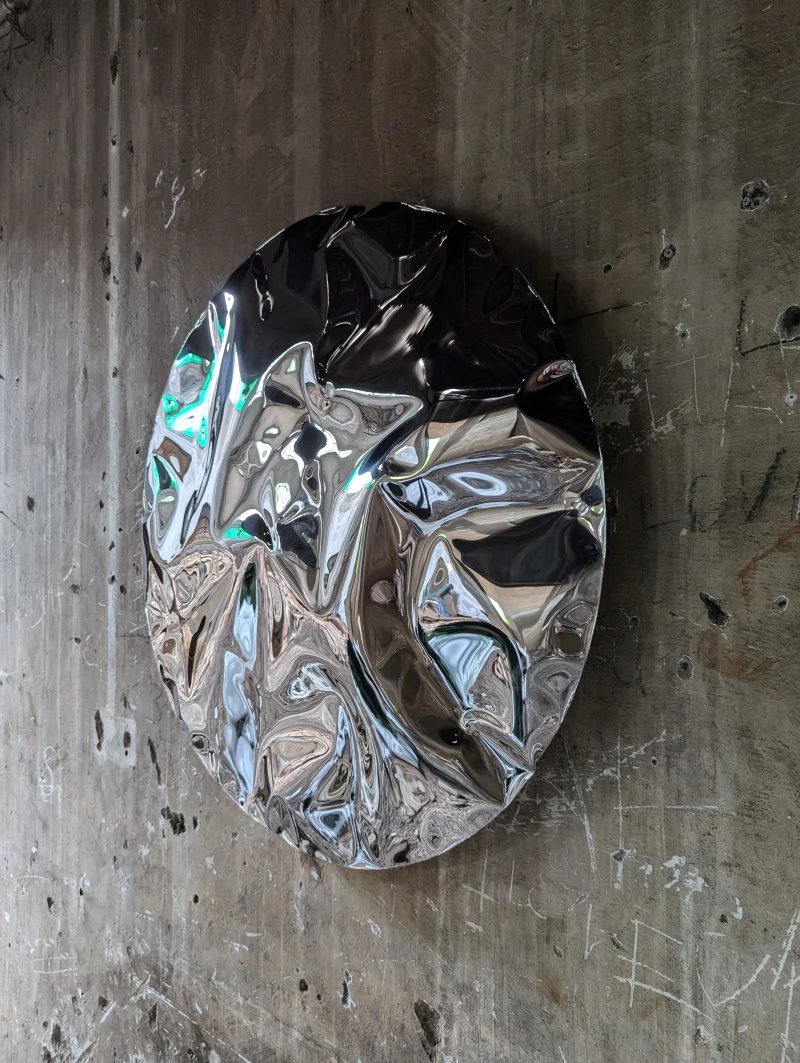 Ramé by Nitush and Aroosh captures the serene beauty of the ocean through its undulating form and reflective finishes. Inspired by slow living by the beach, this wall sculpture embodies the meditative qualities of the sea. Each curve and wave is a homage to the gentle ebb and flow of the tides, inviting viewers to pause and embrace the calmness that nature offers.