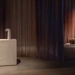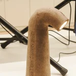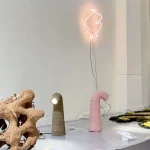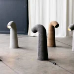 The Tube Lamp by Tom Schoonhoven Studio is a masterful blend of art and craftsmanship created using the ancient rammed earth technique. Layers of natural soil are meticulously compacted within a hand-carved wooden mold, resulting in a strikingly raw, stone-like texture that contrasts beautifully with the lamp’s graceful, organic silhouette.