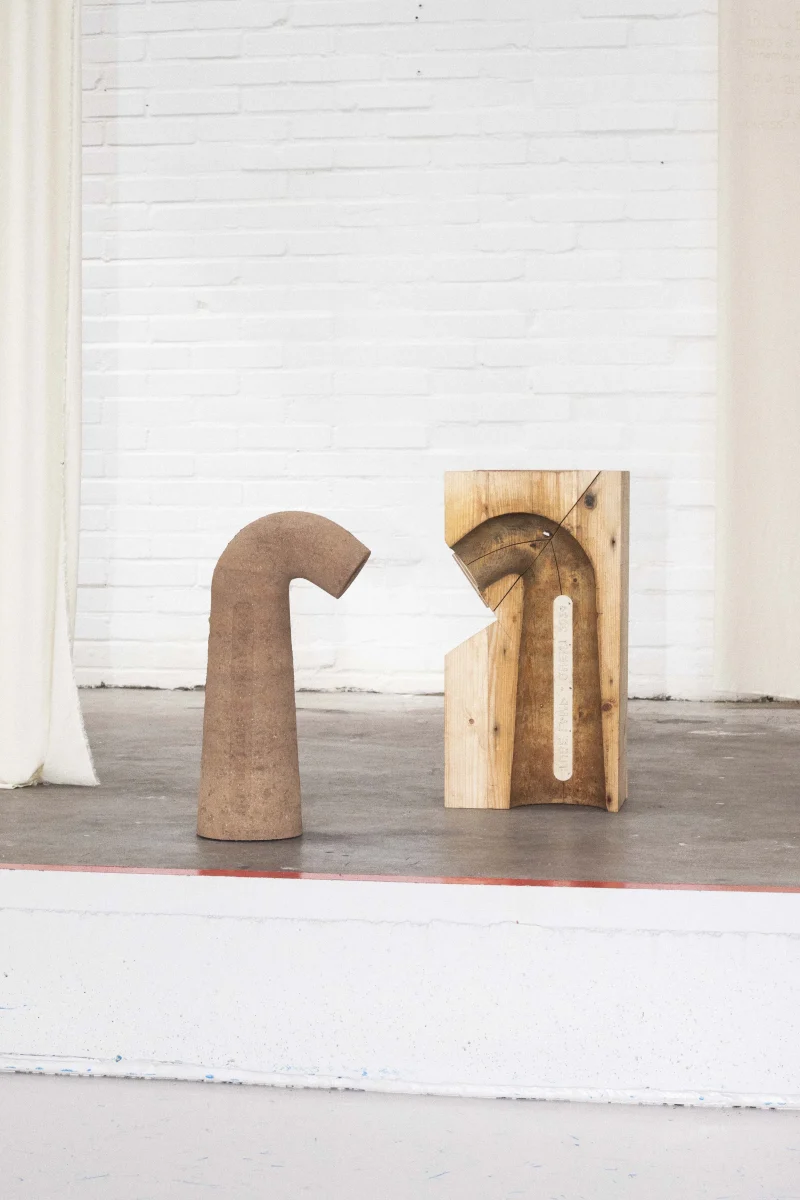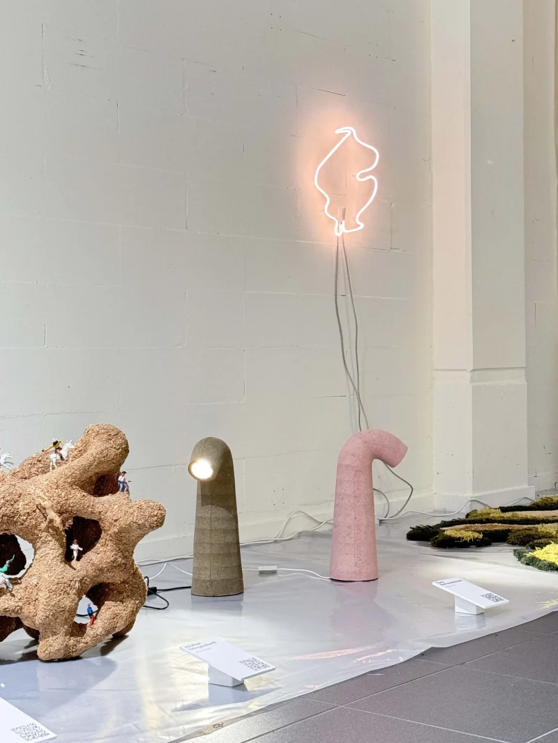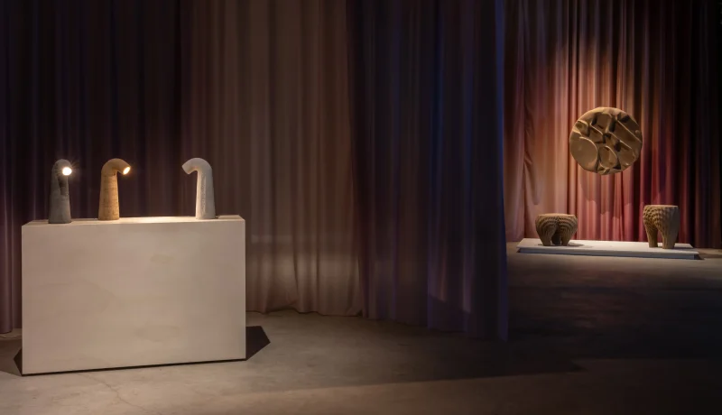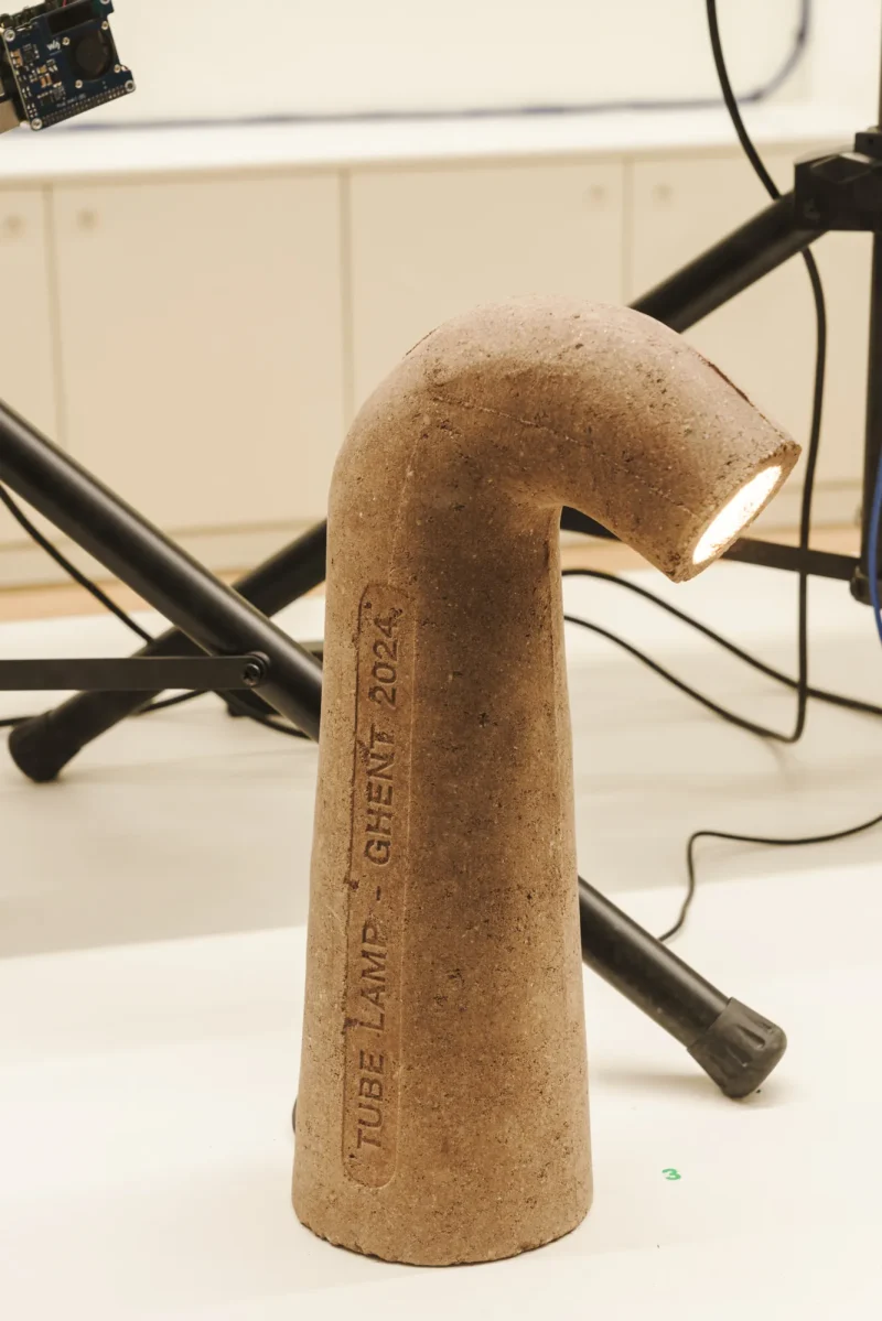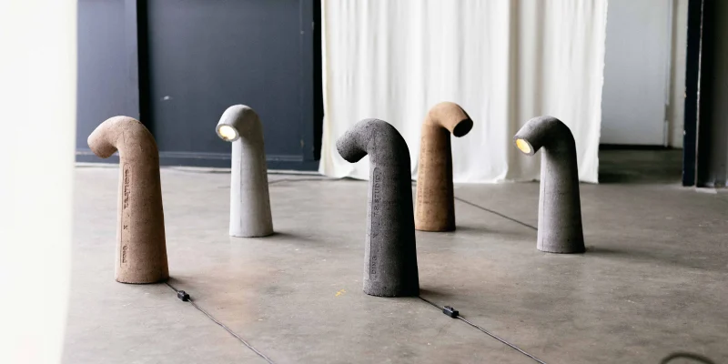 The Tube Lamp by Tom Schoonhoven Studio is a masterful blend of art and craftsmanship created using the ancient rammed earth technique. Layers of natural soil are meticulously compacted within a hand-carved wooden mold, resulting in a strikingly raw, stone-like texture that contrasts beautifully with the lamp’s graceful, organic silhouette.