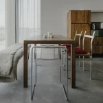 Random is made from crafted felt oak wood and stainless steel, It is available in customizable colors, including blue, red, and terracotta.