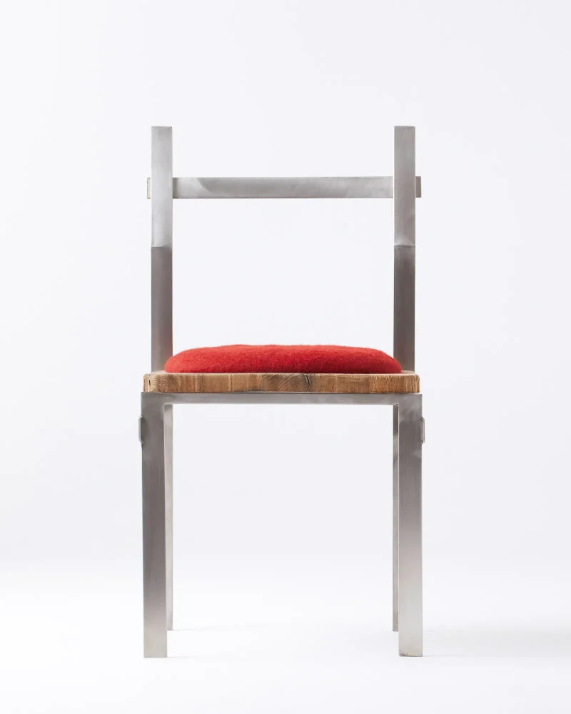Inspired by the discarded and weathered furniture found on the streets of Tbilisi, this chair by Around the Studio transforms felt, oak wood, and stainless steel into a compelling statement on material resilience and urban storytelling.