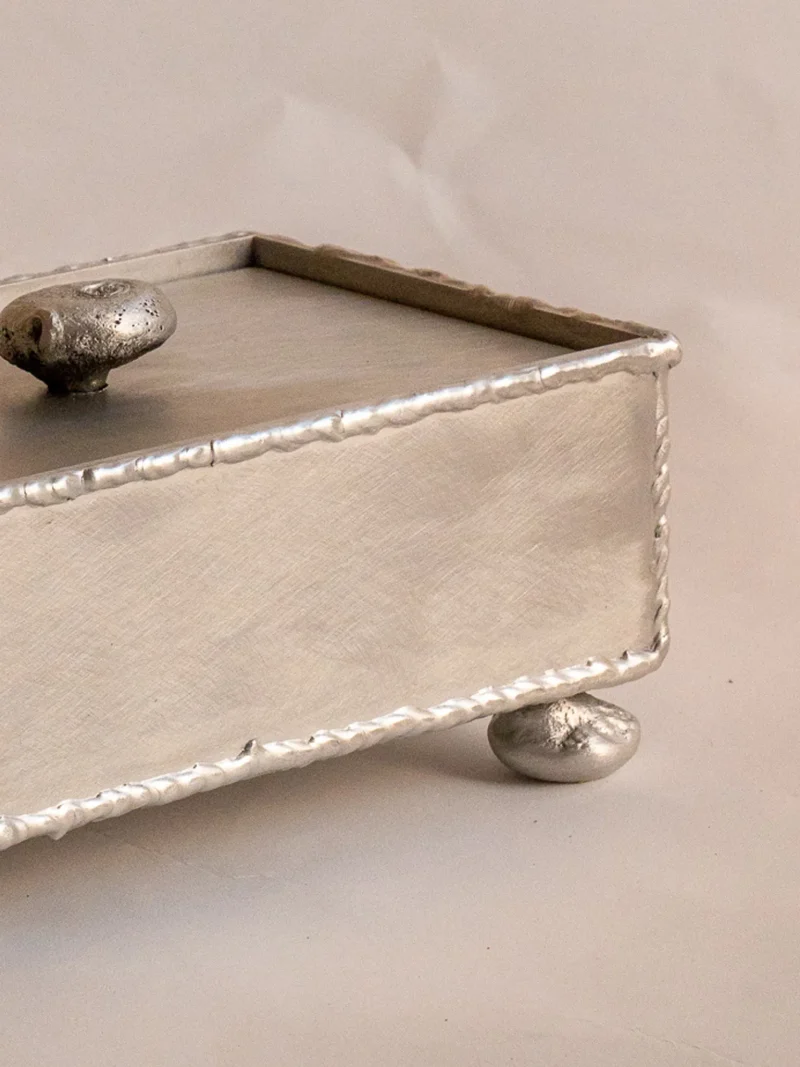This box is designed to store all of your favourite and most precious items. With expressive welding and hand cast elements this piece embodies the elegant and imperfect ethos of Six Dots.