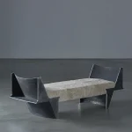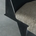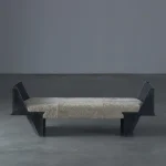 By combining ethically sourced materials such as sheepskin with polished edges of patinated aluminium sheets for “Récamier”, the designer seeks to inspire us to rethink our being and the impermanence of life.