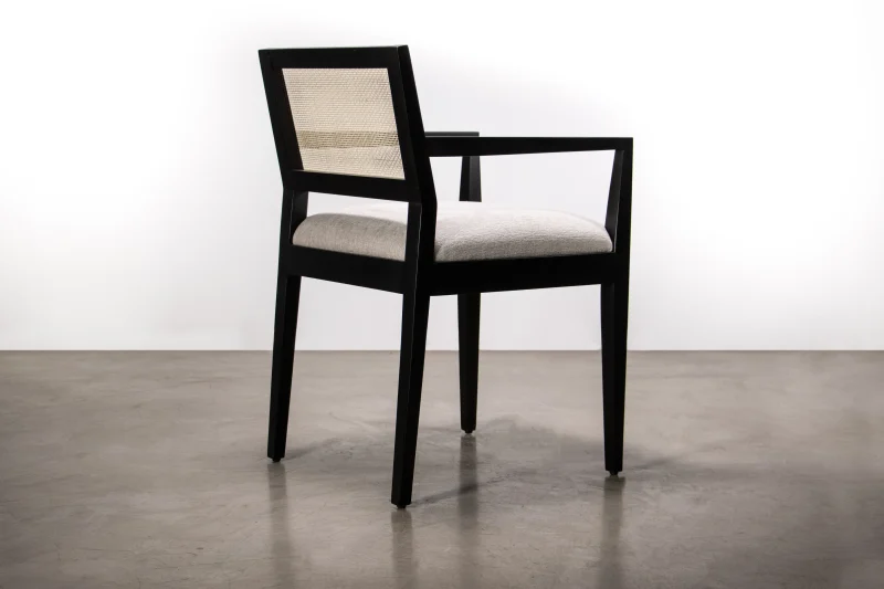 Named after one of the oldest and most illustrious neighborhoods in Buenos Aires, the Recoleta Arm Chair features a light, angular frame with a caned back detail. It can also be adapted as a bench or booth. Shown in ebonized Argentine Rosewood.