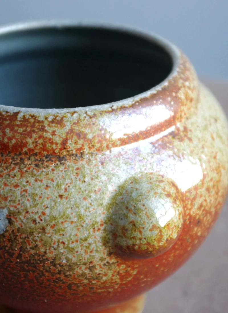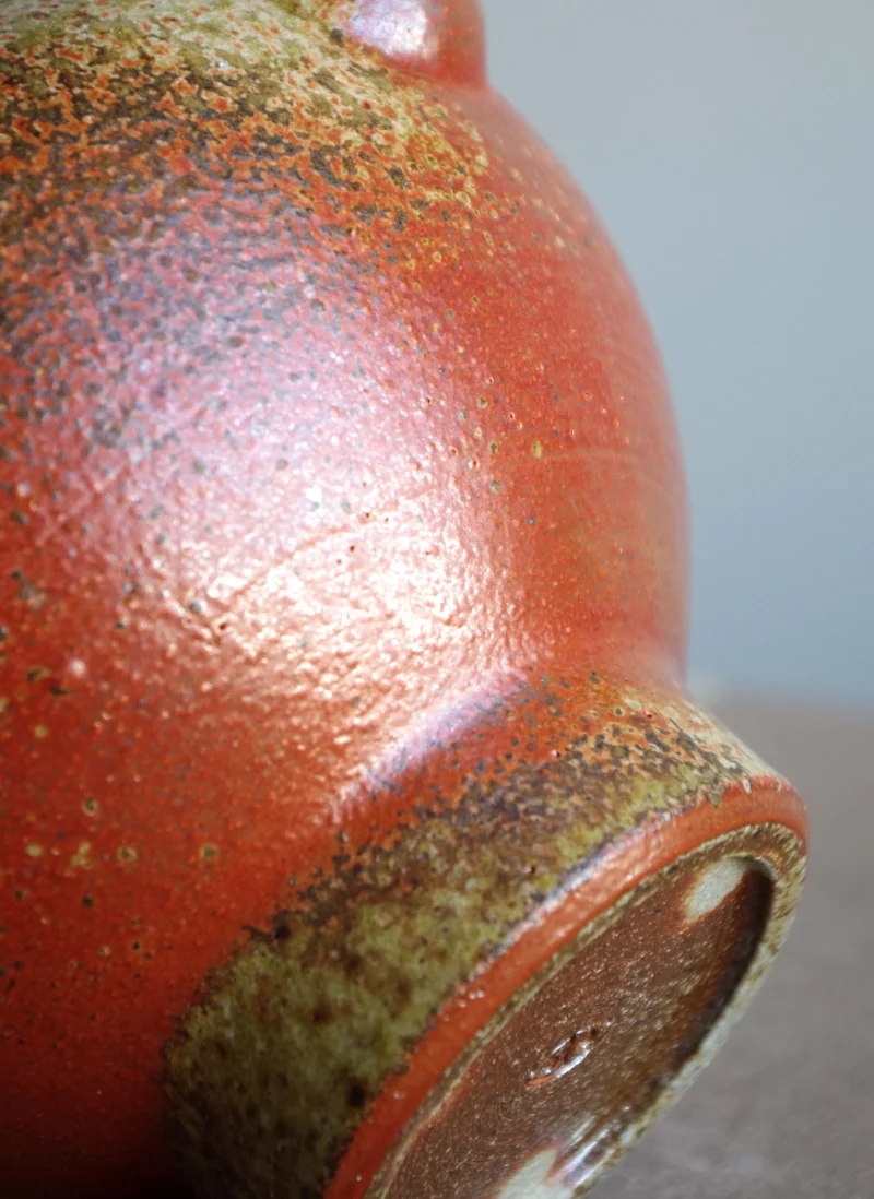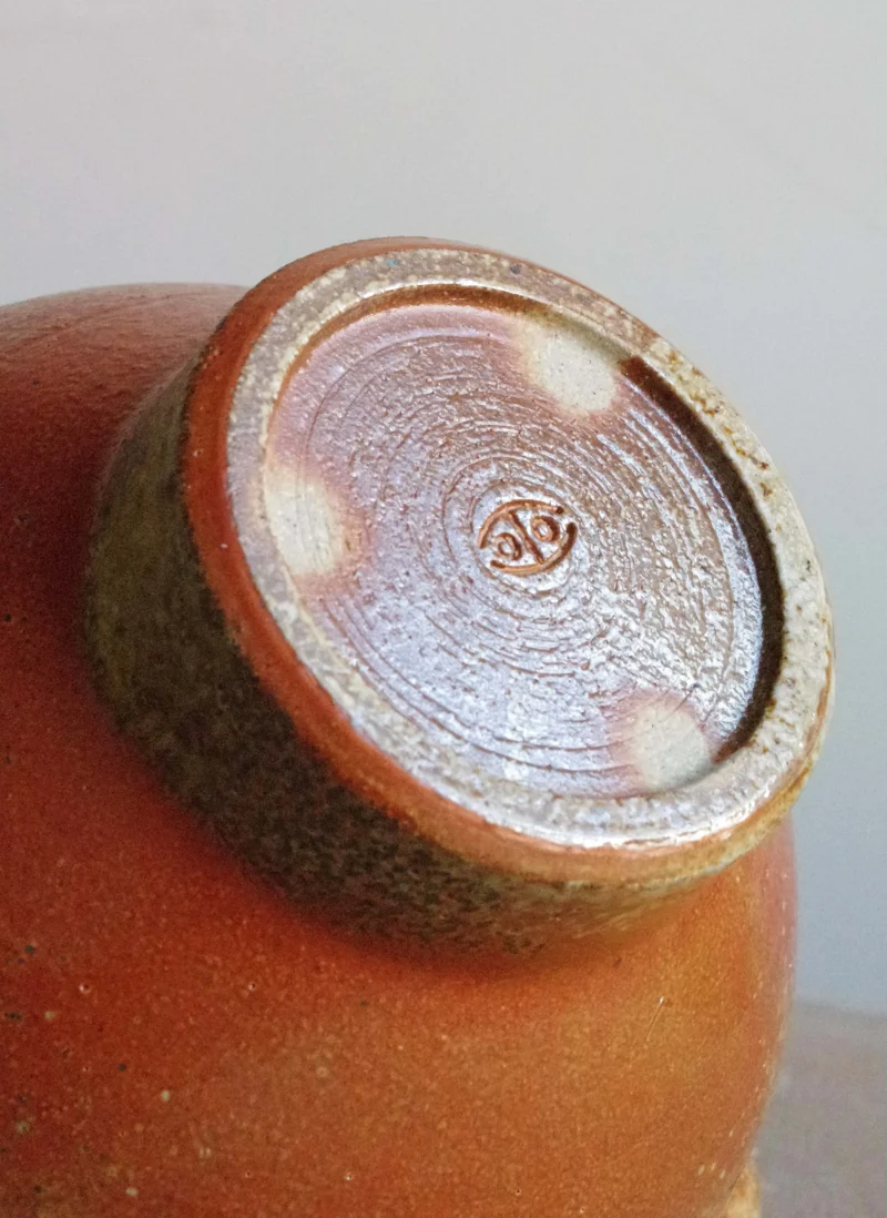 The Red Bomba Vase by Isabella Artale is a stunning one-of-a-kind soda-fired masterpiece that captivates with its vibrant flashes of red and orange. The unpredictable beauty of the firing process creates a dynamic and organic surface, making each vase truly unique.