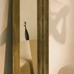 This mirror is a true work of art. Set in a unique, burnished brass frame, it lends a distinctive touch to any room. The frame is meticulously handcrafted, giving the mirror a timeless beauty. The burnished brass creates a warm and elegant radiance that brightens any space. The frame’s unique patina adds to its timeless charm, making it a true focal point. The mirror itself is of the highest quality, providing a clear and precise reflection. It is ideal for use in bathrooms, bedrooms, or any room where you enjoy seeing yourself. Overall, this mirror, with its burnished brass frame, is a timeless and elegant piece of furniture that adds a special touch to any interior. It is a truly unique mirror, unlike anything seen before, and an essential accessory for every home.