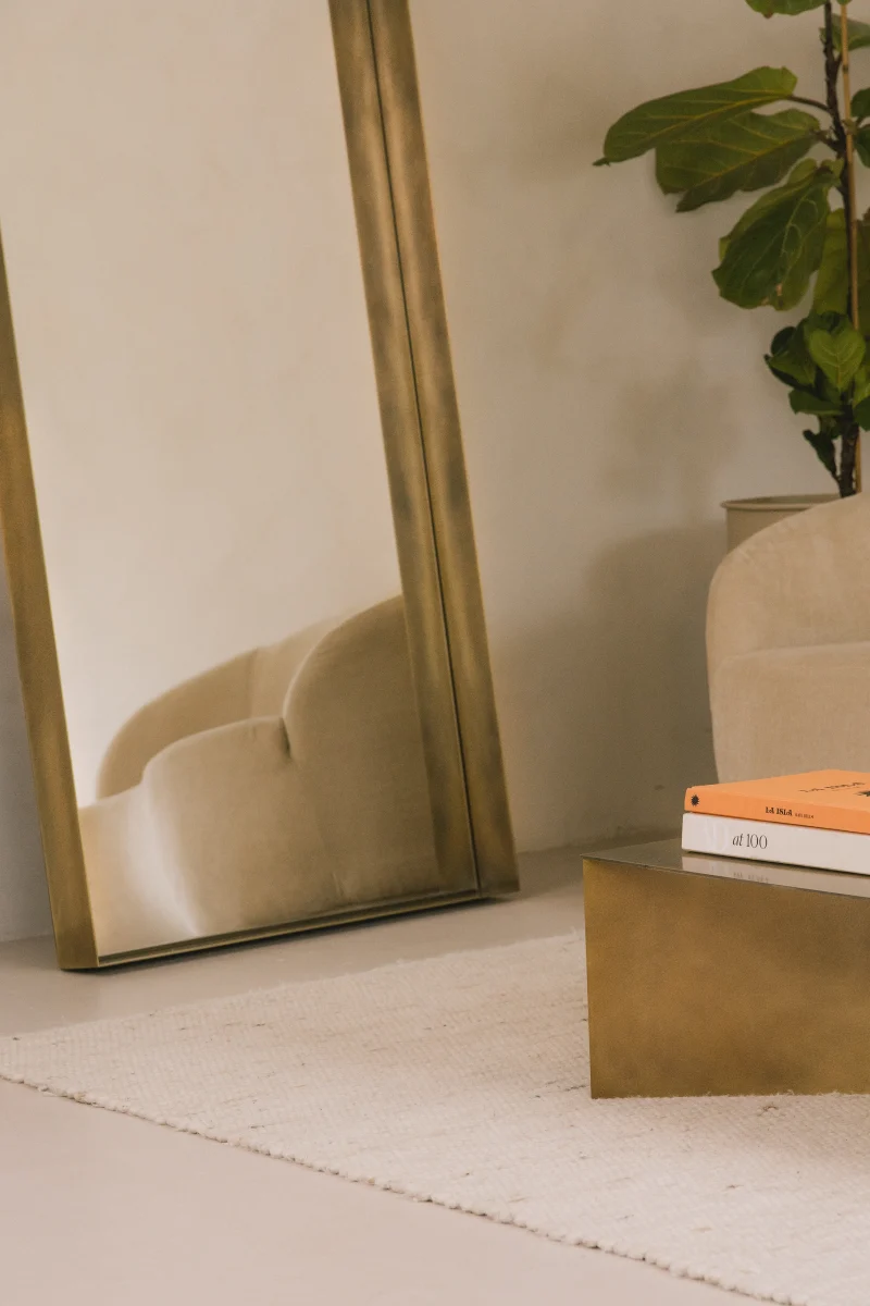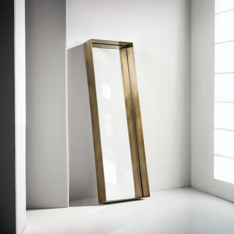 This mirror is a true work of art. Set in a unique, burnished brass frame, it lends a distinctive touch to any room. The frame is meticulously handcrafted, giving the mirror a timeless beauty. The burnished brass creates a warm and elegant radiance that brightens any space. The frame’s unique patina adds to its timeless charm, making it a true focal point. The mirror itself is of the highest quality, providing a clear and precise reflection. It is ideal for use in bathrooms, bedrooms, or any room where you enjoy seeing yourself. Overall, this mirror, with its burnished brass frame, is a timeless and elegant piece of furniture that adds a special touch to any interior. It is a truly unique mirror, unlike anything seen before, and an essential accessory for every home.