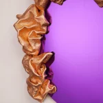 Multidisciplinary artist Ted VanCleave has spent over thirty years crafting his unique visions, residing in San Francisco, Los Angeles, and Miami before settling in Saint Petersburg in 2017. His latest work, the Reflexions Collection of sculptural mirrors, showcases a captivating blend of fluid and organic shapes infused with vibrant colors. The medium is leather, reimagined in extraordinary ways. Each piece serves as a meditation on form, revealing a different narrative from every angle. With their flowing contours, intricate folds, and striking metallic finishes, these mirrors bring a dynamic energy to any space.