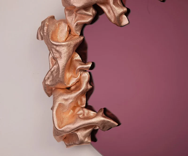 Multidisciplinary artist Ted VanCleave has been crafting his distinctive visions for over thirty years, having resided in vibrant cities like San Francisco, Los Angeles, and Miami before settling in Saint Petersburg in 2017. His latest endeavor, the Reflexions Collection, showcases sculptural mirrors that seamlessly blend fluid and organic forms, all adorned with striking colors. The innovative use of leather transforms this medium into a tactile experience unlike any other. Each piece serves as a meditation on form, where every angle reveals a new narrative. The dynamic interplay of flow, folds, peaks, and valleys, complemented by bold metallic finishes, creates a captivating visual experience. These mirrors are not merely decorative elements; they infuse any space with a renewed sense of energy and intrigue, making them endlessly engaging for the viewer.